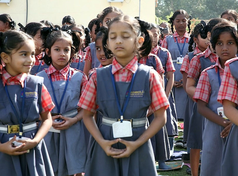 天国乐团十八日抵达海得拉巴市的卓越学校(School of Excellence)表演,这是一所从幼儿园到高中的贵族学校。全校师生聚集在广场,学生也用梵语念颂一段感谢神的词语和热烈鼓掌表达欢迎。