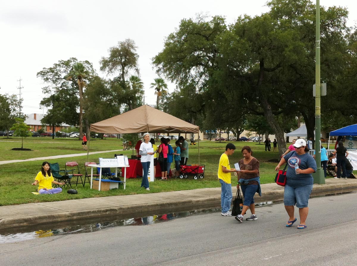 圣安东尼奥市法轮功学员应邀参加了本次活动,展示了法轮大法的五套功法,并向过往行人介绍什么是法轮大法,听完介绍后,很多人对这个传统的修炼方法表示了浓厚的兴趣。