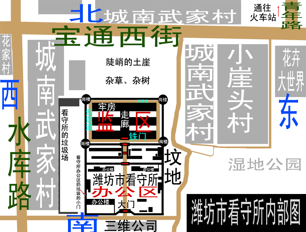 ![]() 图3、潍坊市看守所的周围路线、内部情况 |