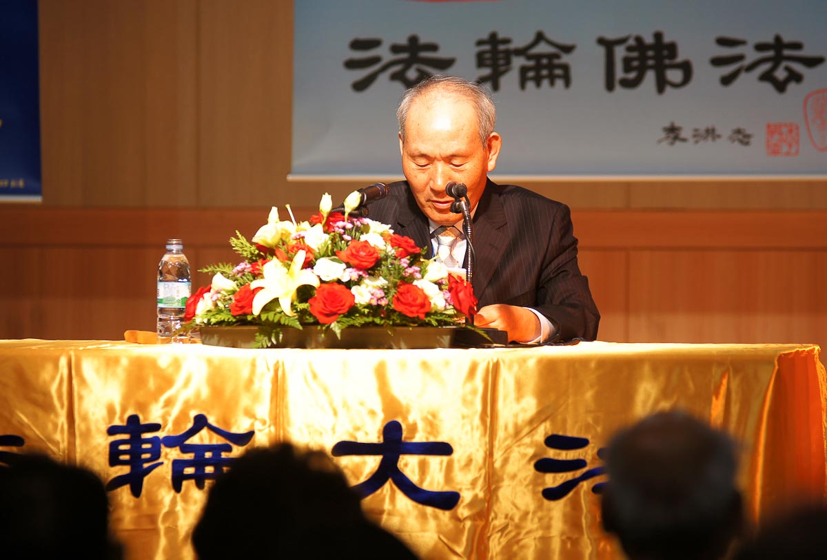 庆尚北道清道的学员金先生,开始修炼法轮功还不到三个月。他在发言中说,当他第一次阅读《论语》时,“感觉到这并非是人类的文章,而是在传达文字背后神的领域——宇宙真理的讯息。读完《论语》以后,感觉全身的细胞都在震颤。”
