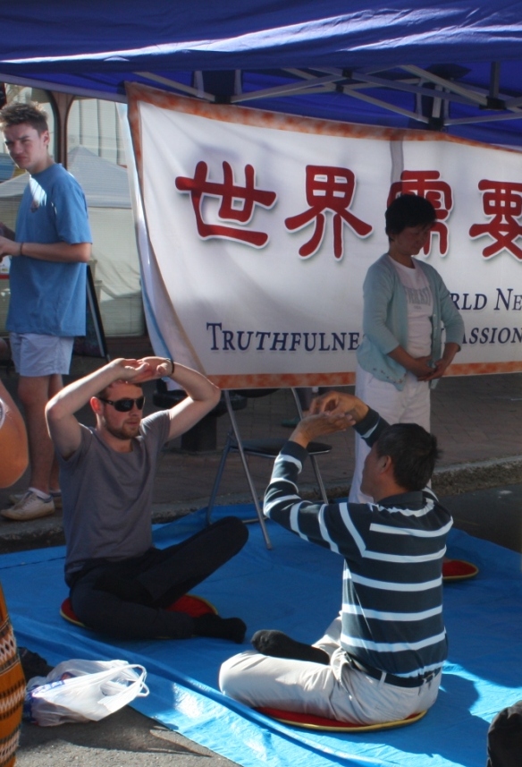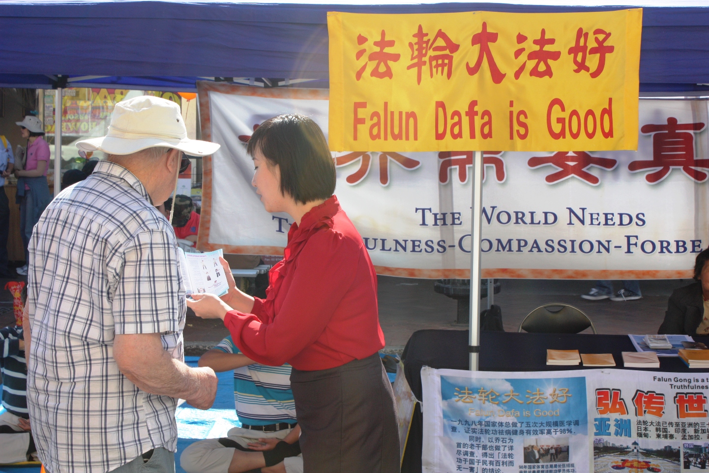 一位基督徒华人女士特意在法轮功摊位前停下来,主动找一位西人法轮功学员聊了很久,她说她看到中国人怕跟法轮功学员在街上说话。西人学员解释说:“是的,中共对法轮功的迫害和宣传无处不在,从中国延伸到了澳大利亚。”这位女士认为所有的人都应该尊重和彼此关爱。当她得知法轮功教导“真善忍”,是一个传统又古老的修炼方法时,她希望中共对法轮功的迫害会很快结束,所有的修炼人都应该有信仰自由。