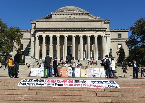 正在申请神经生物学和心理学的博士生的哥大学生 Steven Petro说,“我认为一个信仰系统应该向大众公开,活摘器官应该被谴责(制止)。我对这个话题非常关心,我支持抗议。”