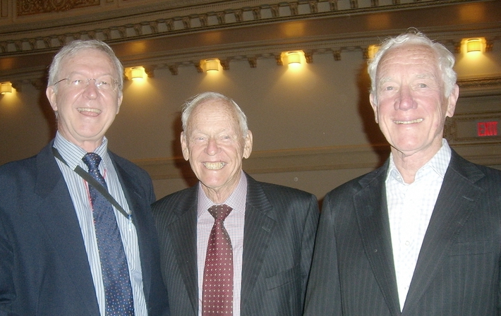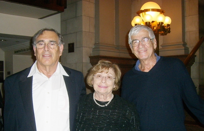 ![]() 纽约音乐家莱文(Jules Levine,右)与朋友Hecht夫妇在二零一三年十月五日纽约神韵交响乐音乐会(图片来源:大.纪.元;)。 |