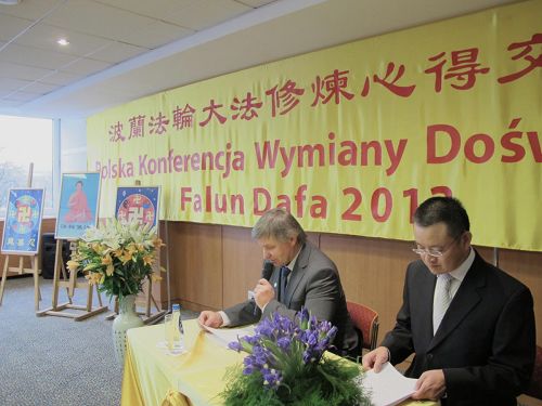 Tomek在法会上,与学员们分享了半年前如何实践大法化解法律纠纷难题的经历。今年初Tomek女儿出生时,由于没有按照波兰习惯打各种预防针,导致周围人包括主治医生,和不修炼的母亲的极大不理解,甚至把他们告上了法庭,面对突如其来的法律纠纷,和婴儿可能被带走的麻烦,Tomek夫妇悟到不能回避矛盾,他们主动找法官说明具体情况,又请大家集体为此发正念,情况立即开始转变,另一个医生检查婴儿的身体,表示父母对婴儿照顾的很好,并出具了正面的健康证明,Tomek的妈妈也变了,最后法官也判不需要调查,法轮功学员理性平和的做法,圆容好了突如其来的矛盾。
