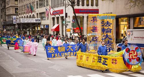 在众多退伍和现役军人的仪仗队和各式军乐队中,祥和壮观的法轮功队伍带给纽约人很多感动,观众克丽丝女士说:“我看到了最美好的事物(法轮功队伍),非常的感动。”