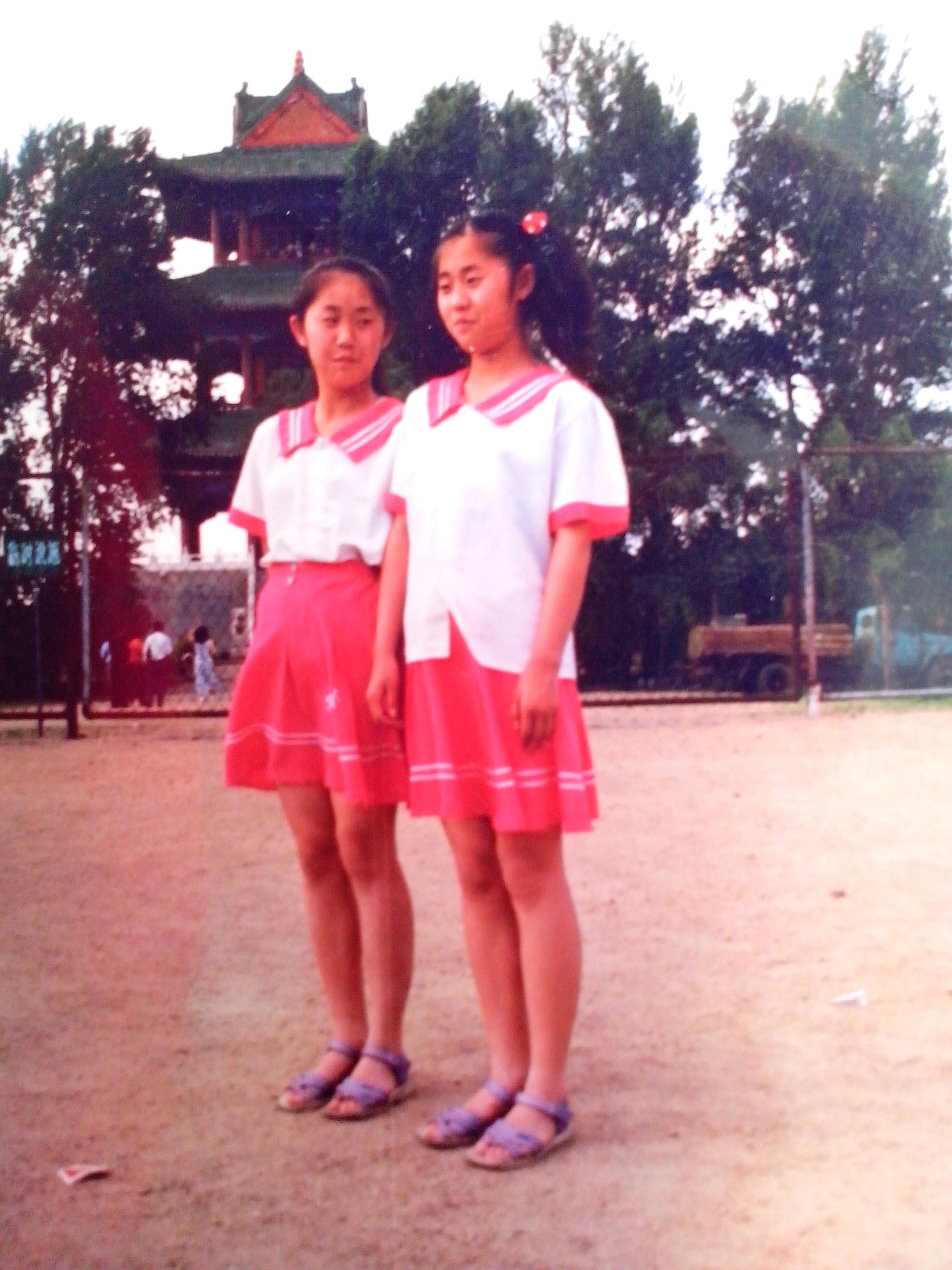![]() 王文兰(左侧)十四岁 |