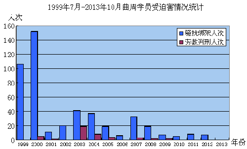 | 日期 | 骚扰绑架人次 | 劳教判刑人次 | 累计罚款(元) |