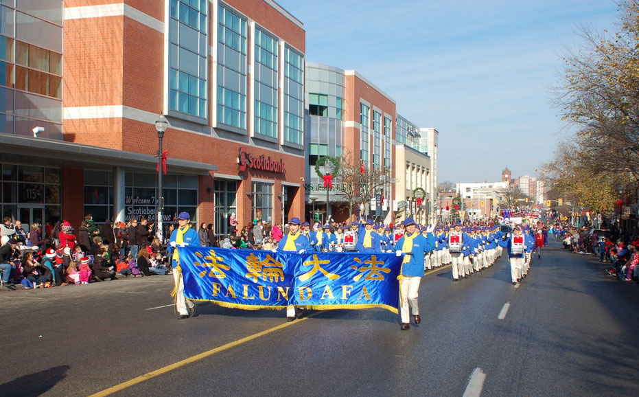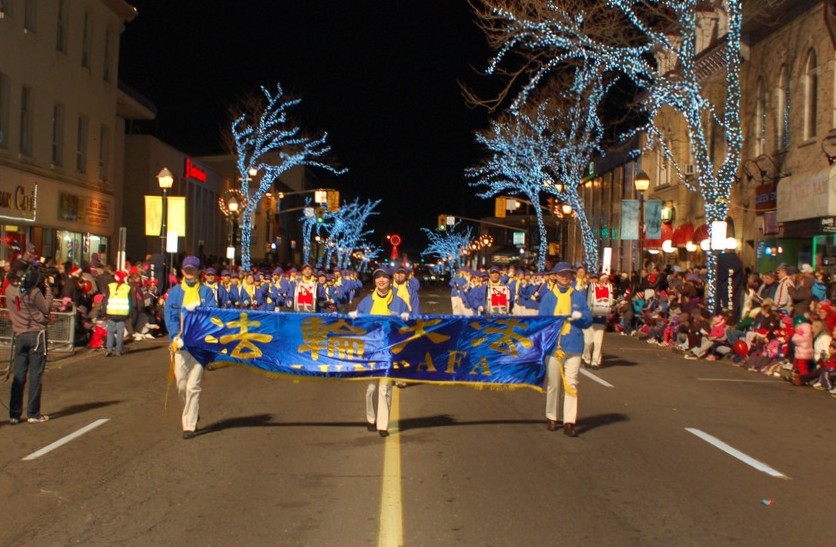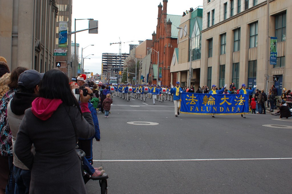 游行在滑铁卢是上午十点,哈密尔顿中午二点和布来顿下午五点。在这西方盛行的圣诞节游行中,天国乐团一天内把法轮大法的美好又一次带给三个城市的几十万观众。