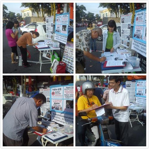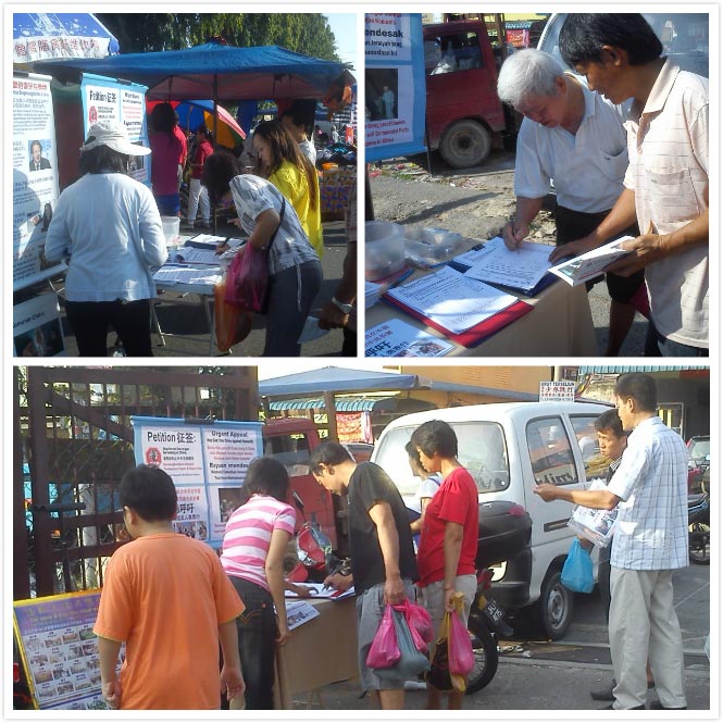 二零一三年十月二十七日,在新山市区的柔佛再也花园的早市上征签时 ,一位卖糕点的女小贩在签名后说:“这事每个人都应该来帮忙的。”并叫周围的小贩同行们要帮忙签名,帮忙阻止中共活摘器官的暴行。
