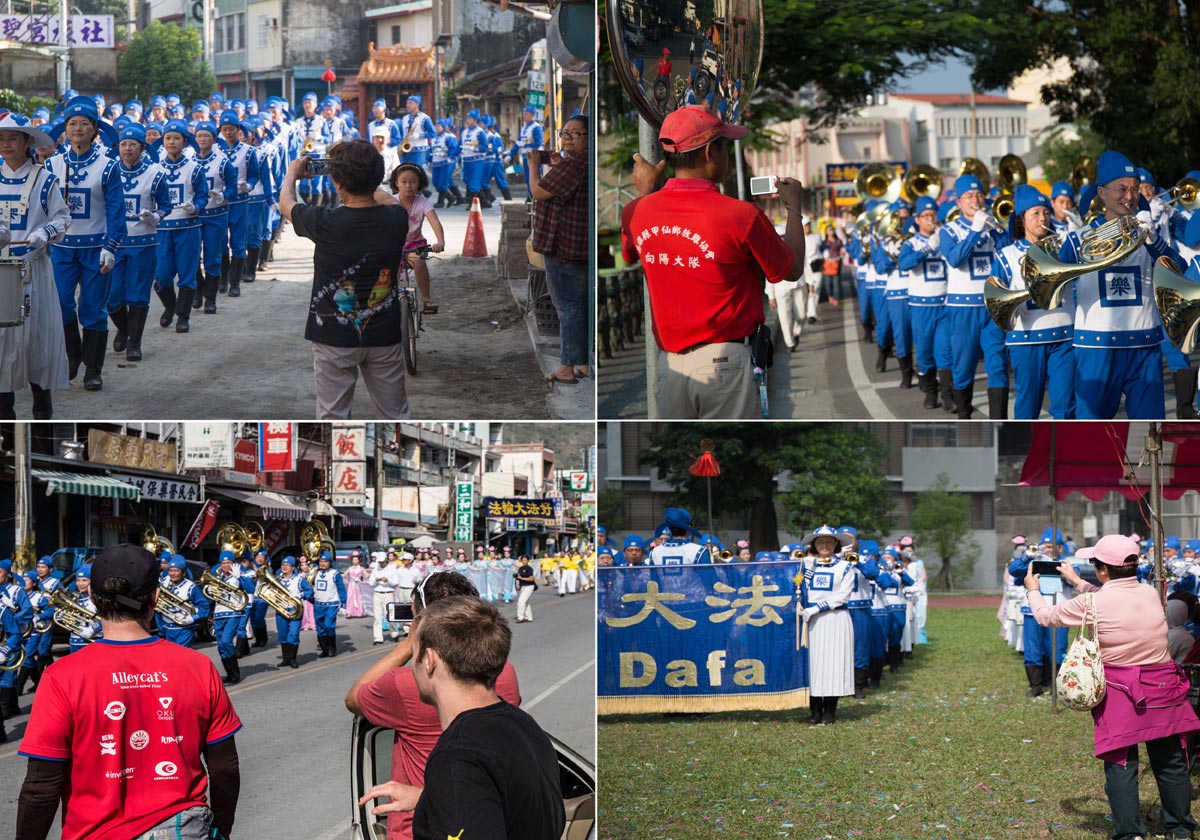 庆典集会与游行踩街中,一位六龟的老太太赞叹法轮大法天国乐团最好看。甲仙的一位老太太比起大拇指说,法轮大法的队伍好庄严。一位看到游行的吕小姐说好高兴,很想学法轮功并留下联络电话。区长室的小姐则对法轮功学员们说:辛苦你们了,今年的阵容令人震撼。