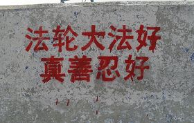 还有一件事让犯人和警察都对我刮目相看。一次全大队三、四十个大法弟子因声援被迫害的大法弟子,全都不穿劳教所的服装,不报数,拒绝奴役,还集体绝食。一个恶警说:凡是不遵守劳教所规矩的,都站出来,看有几个能经得住上绳的?唰一下站出十多名同修。恶警挨个给大法弟子上绳。我就大声喊:“法轮大法好!真善忍好!……”同时喊正法口诀,我的声音特别洪亮,响遍了整个劳教所。恶警来抓我,我就跑,边跑边喊。恶警抓住我后,两个恶警拧着我的胳膊,另一个恶警就去脱我的袜子,再一个恶警用手铐撬我的牙,想用袜子堵我的嘴。我使劲咬紧牙齿,决不配合。他们几个人就是堵不住我的嘴。没办法,又想把我的两只手在背后上下斜着铐起来。我用力往外撑,他们就是铐不着。恶警害怕丢面子,就让那两个恶警架着胳膊把我推到后院去。