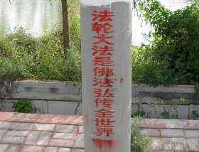 有一年十月一日,邪*党-过所谓“国庆节”,放了半天假。大法弟子经过交流,决定在血旗下集体发正念。上午十点钟,大法弟子唰一下全都跑出了宿舍,在操场中间血旗底下单手立掌发正念。