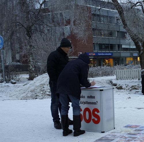 许多签名后的民众告诉法轮功学员,感谢他们让自己有机会为法轮功学员签名,并一起参与制止迫害。
