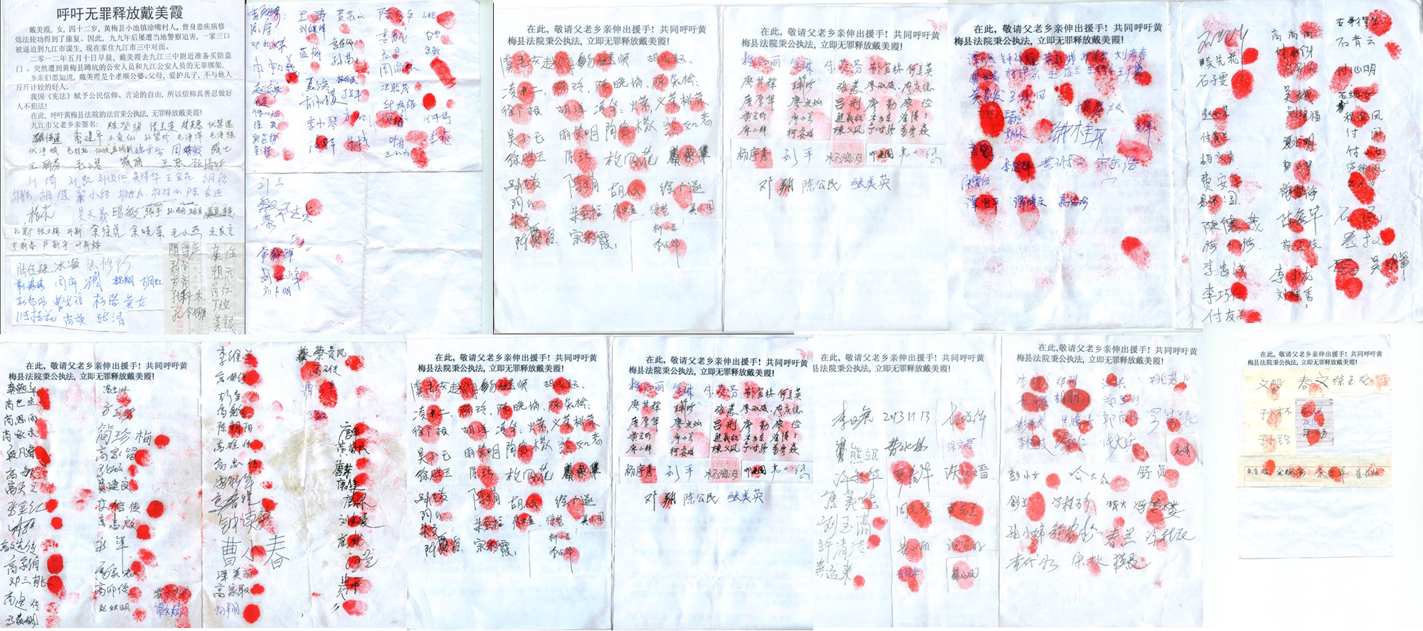 ![]() 湖北237名民众签名、按手印要求释放戴美霞女士。 |