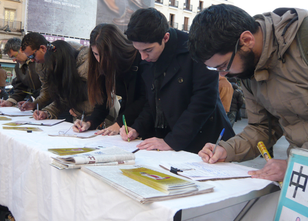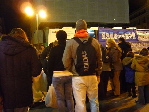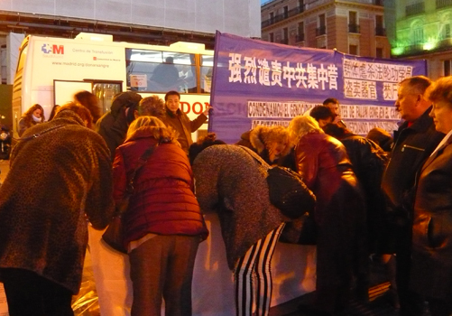 ![]() 西班牙法轮功学员在马德里的市中心太阳门广场举行征签,谴责中共迫害 |