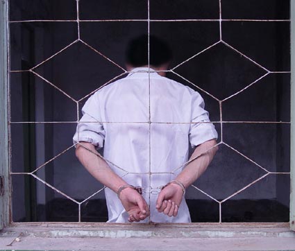 ![]() 酷刑演示:半蹲反铐背挂(就是站不起来也蹲不下) |