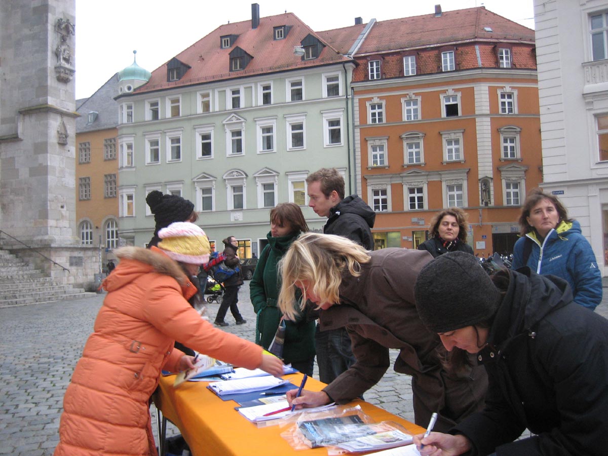 两位来自慕尼黑的女士,在雷根斯堡碰到法轮功学员特别高兴, 她们表示曾经在慕尼黑学过功法,自己非常清楚法轮功有多好,对于在中国发生的事情,她们简直不能想象,也不能理解怎么会发生这样灭绝人性的迫害,怎么能迫害这样的好人,而且为什么迫害到现在还在继续。她们拿过征签板说,这个字我们一定要签,希望迫害早点结束。