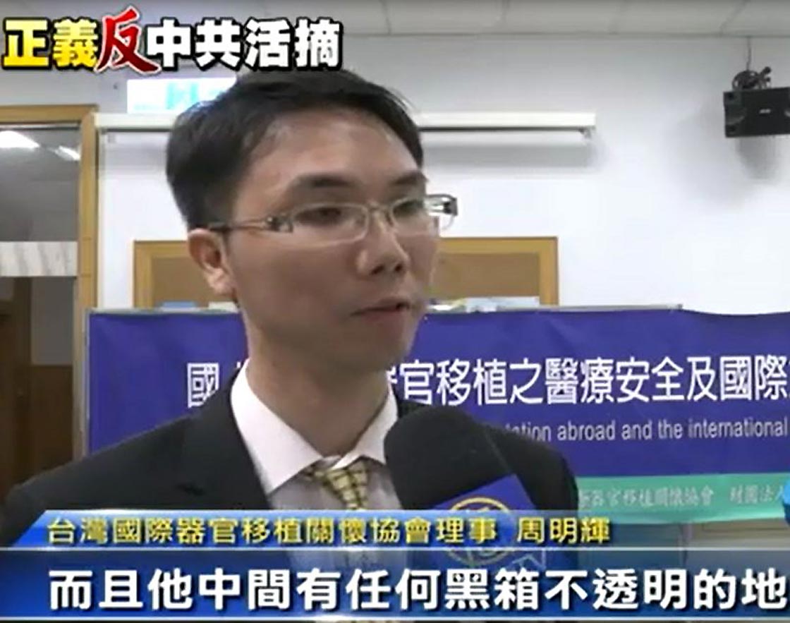 ![]() 台湾国际器官移植关怀协会理事周医师呼吁:对中共强摘器官移植这个议题,大家一定要持续关注。 |