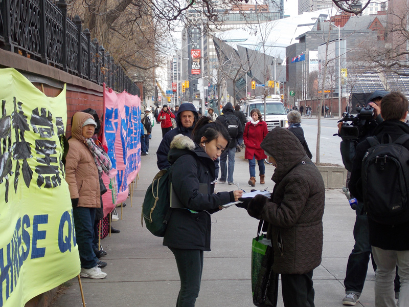 ![]() 多伦多市民在真相长城前签名支持反迫害 |