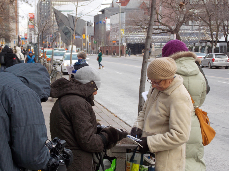 多伦多市民安德森签名后表示,摘取法轮功学员的器官拿去出售,这是令人发指,每个人都有制止这种行为的责任。市民玛丽安娜签名后告诉记者:“迫害民众是不对的,每个人都应该有自由表达的权利。”