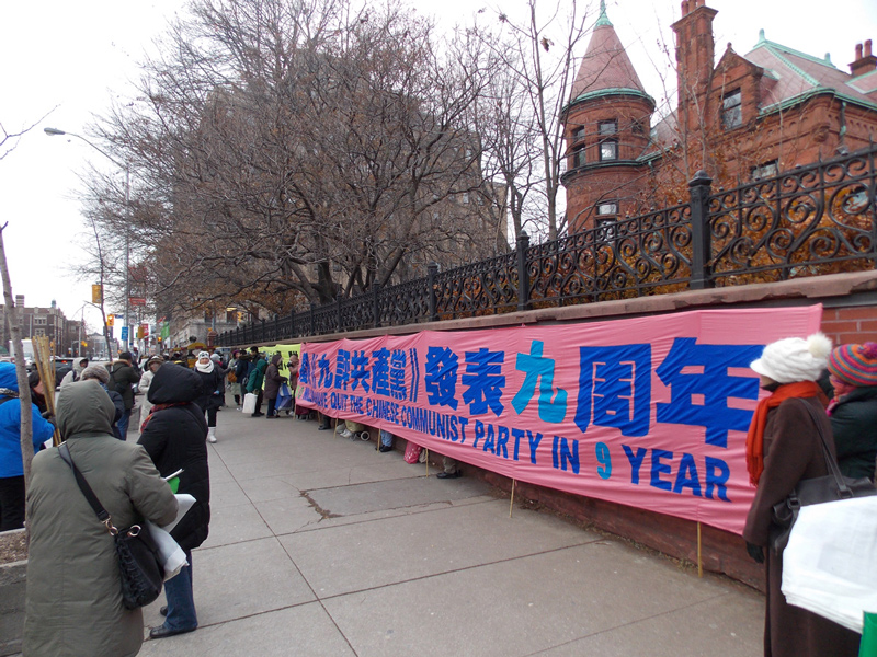 退!党!义工石女士平时在中领馆前和多伦多电视塔前讲真相。她说,自从《·九·评*共产党》发表以后,对中国大陆和海外华人影响很大。民众渐渐觉醒,尤其是中领馆前环境的变化特别明显。过去,那些来领馆办签证的华人对法轮功不理解,法轮功学员给他们讲真相不但不接受,还鄙视、谩骂;现在很少见到这种情形,很多人也愿意停下来听真相,有的也愿意三:退.。