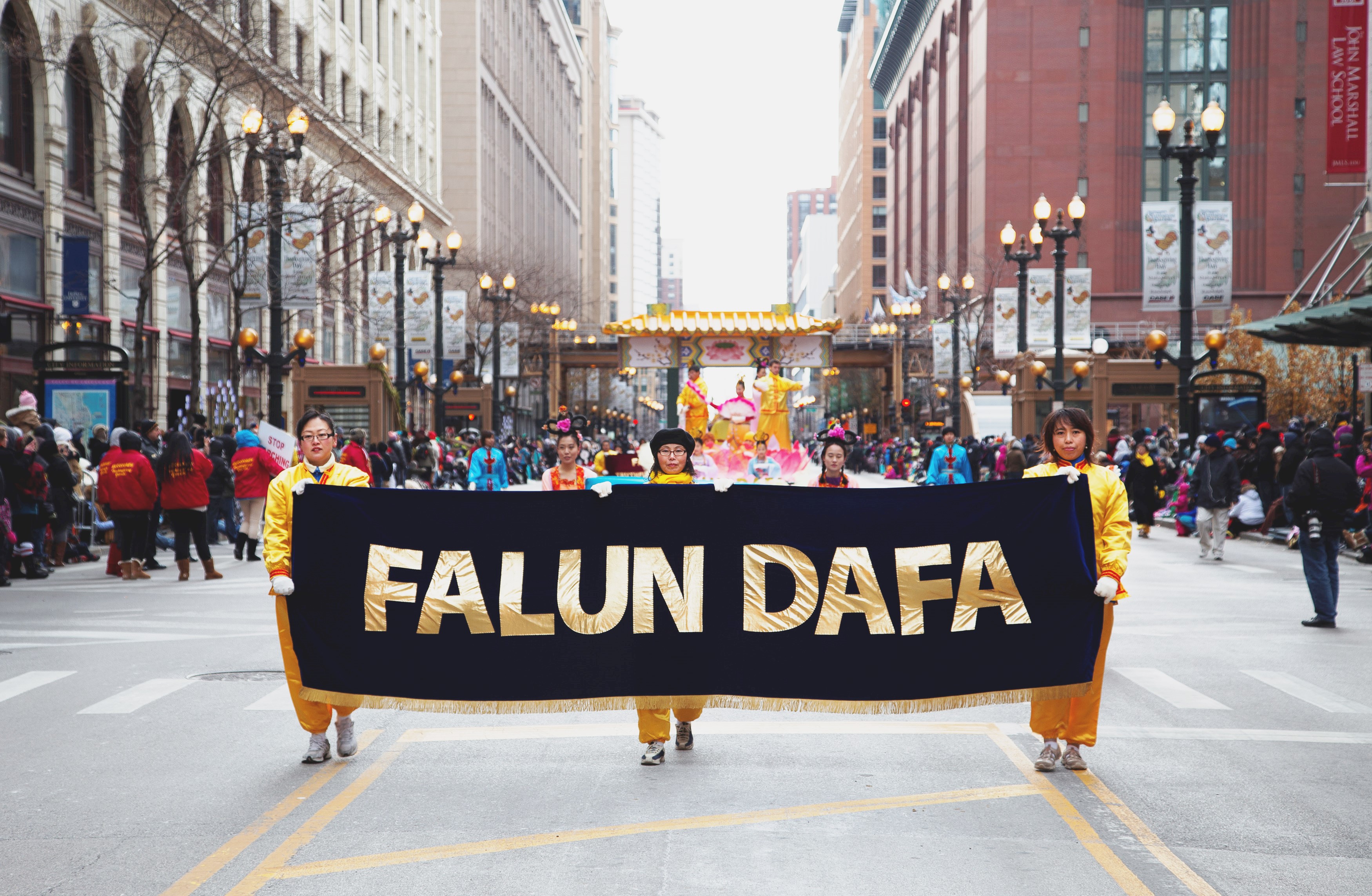 ![]() 图一:芝加哥法轮功学员连续十年参加感恩节遊行。 |