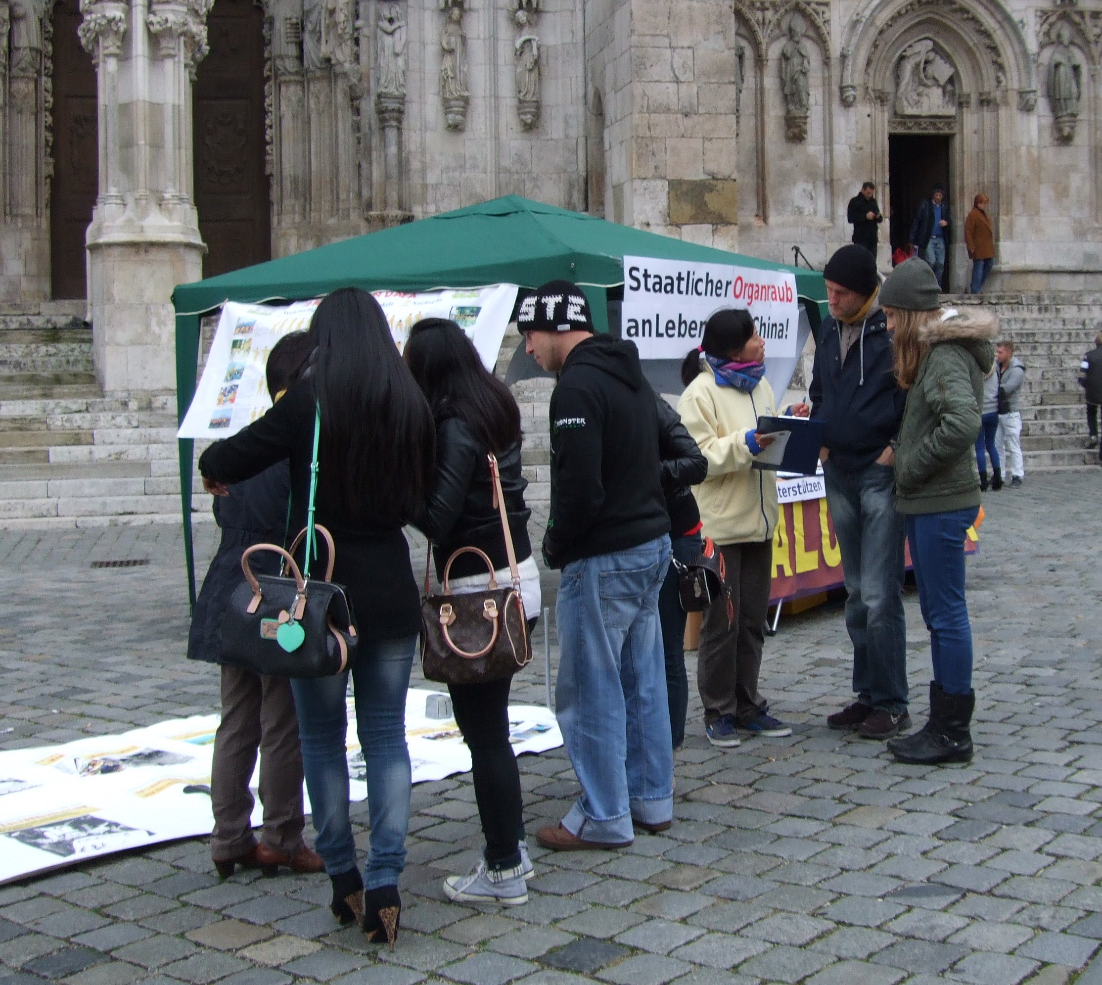![]() 图:法轮功学员在德国雷根斯堡市中心大教堂前征集反活摘器官签名 |