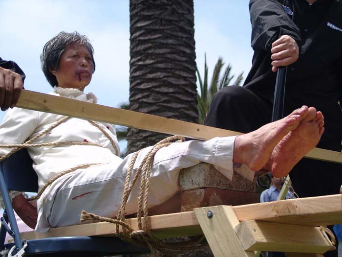 ![]() 酷刑演示:强行将受害者的双腿一字劈开 |