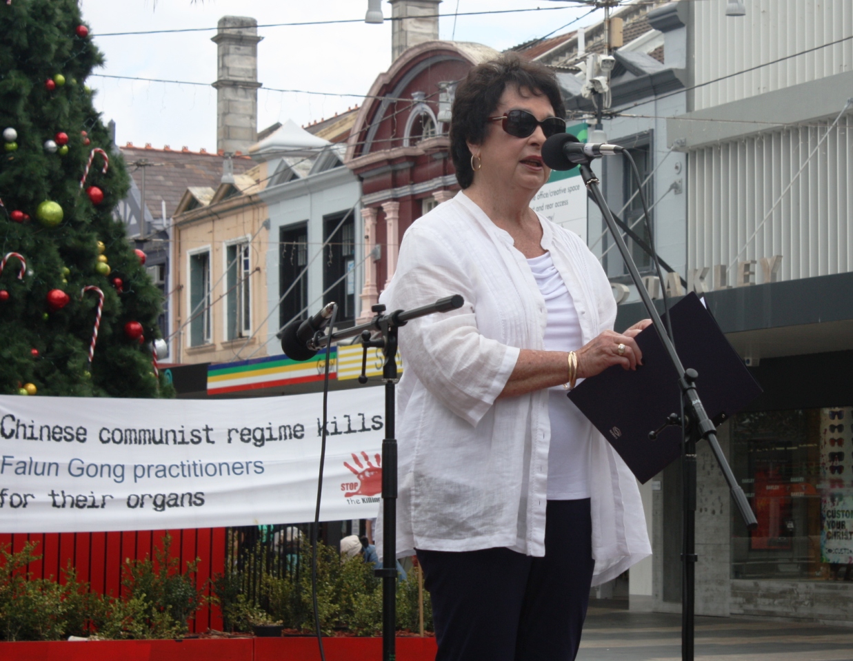 曼丽市市长吉恩·海(Mayor of Manly,Councilor Jean Hay AM)在集会上首先发言,她对所有今天来参加这个活动的来宾表示感谢。她强调:“一九五零年,联合国大会宣布把每年的十二月十日定为人权日。这是为了引起全世界人民的关注:人权已经被宣布作为所有人和所有国家成就的通用标准。而否定基本人权则是对文明进步的仇视。”