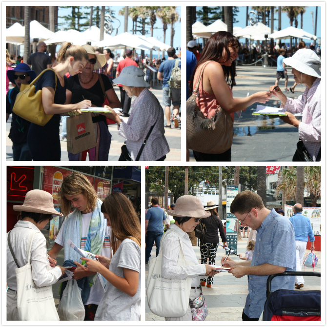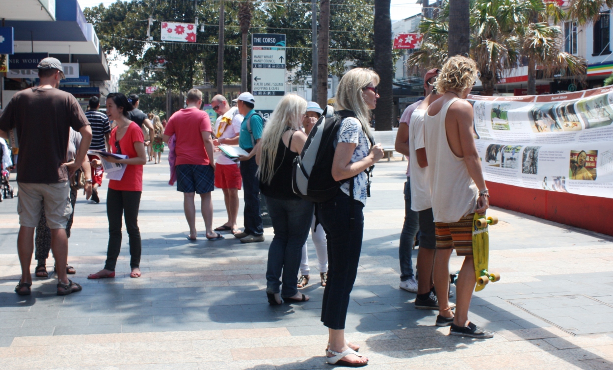 澳大利亚悉尼北海滩著名的旅游胜地曼丽市是夏日度假胜地,在码头与海滩之间,市中心(Manly Corso)的开放式半圆型剧场(Amphitheatre)的集会吸引了很多路人。曼丽市长、前澳洲纽省议员、法轮功代表和西藏团体代表等出席了集会并发言。很多民众表示痛恨中共的无人性,同时支持早日结束对人权的迫害。