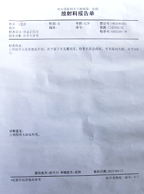 我修炼后三天就把那么严重的股骨头坏死炼好了,我去了修炼前曾经看过病的省医院拍片,医学影像科的医生张明磊给我拍完片子,那个大夫就在X光检查报告单上确诊的“股骨头坏死”后面打了个问号,在诊断书的下面写着:“观察”两个字。但是他写出病例了,盖的章。他给我做各种检查我都正常,走道,蹲起都行,他很纳闷。我就问他,问号是啥意思?他说:你是股骨头坏死。你这不是好了吗?我说我们家人让我花钱来拍片,就想看看片子怎么样。片子是啥样呢就给写啥样,家人只想要片子。你这问号是啥意思,我到底是不是股骨头坏死?他说:是,是股骨头坏死。但是你哪都不疼,你不都正常了吗?他也不明白是怎么回事。他对我提出的问号很后悔,大夫的名章已经盖上了没有办法再改变了,也只好那样了,他一再说:是股骨头坏死,是股骨头坏死。