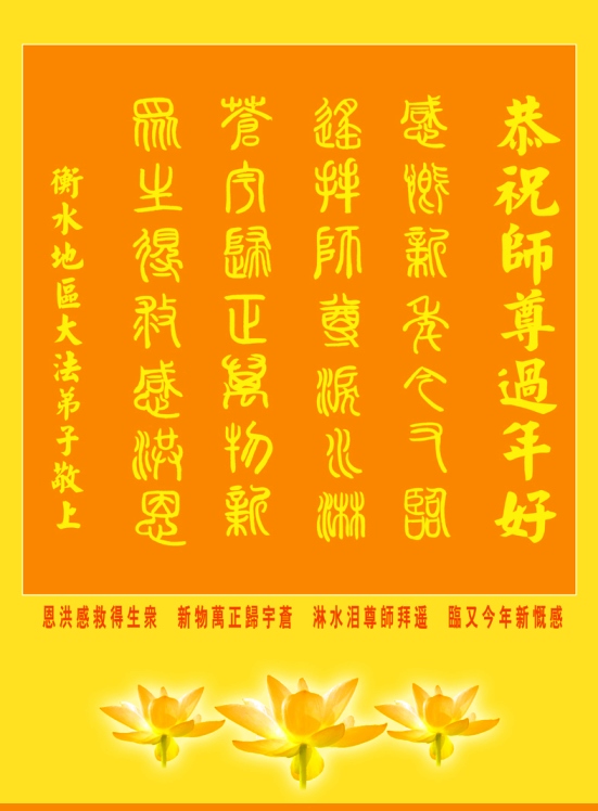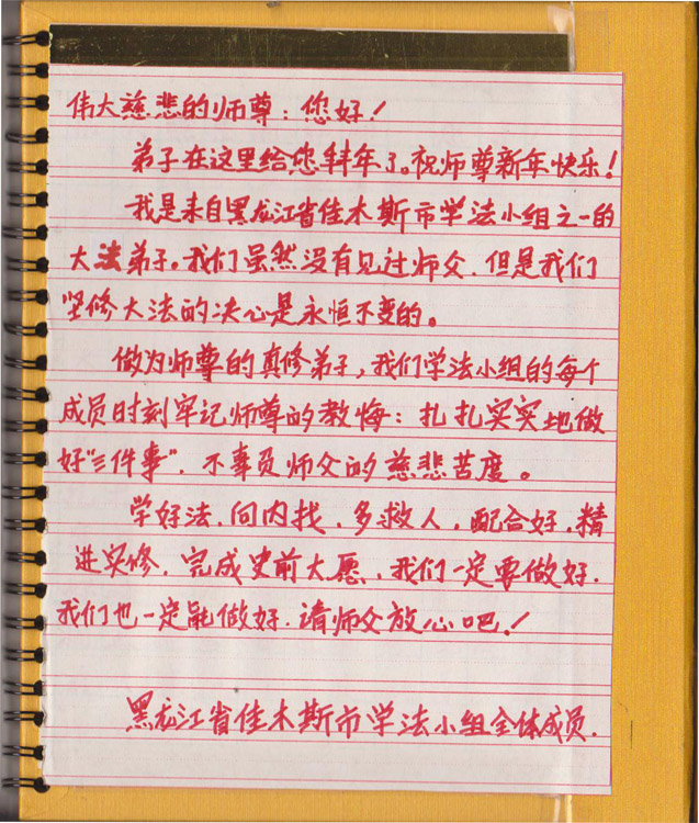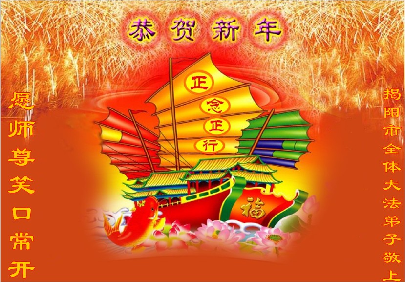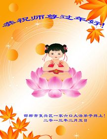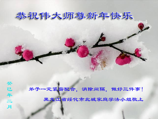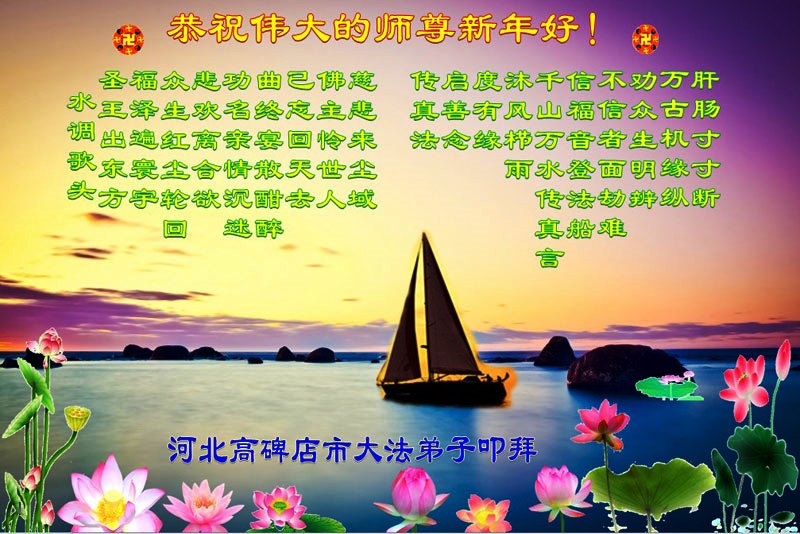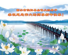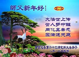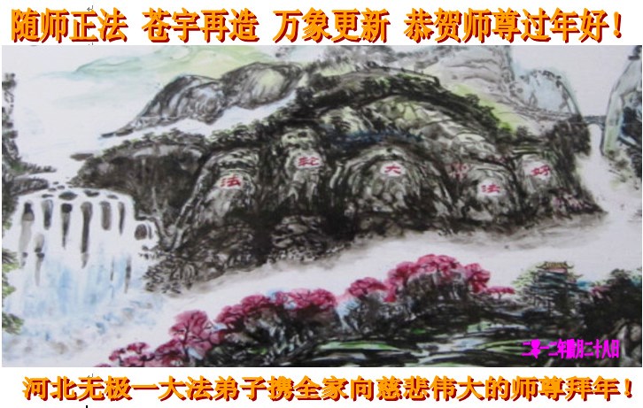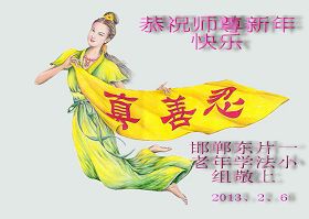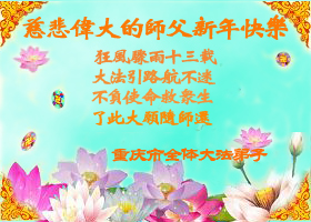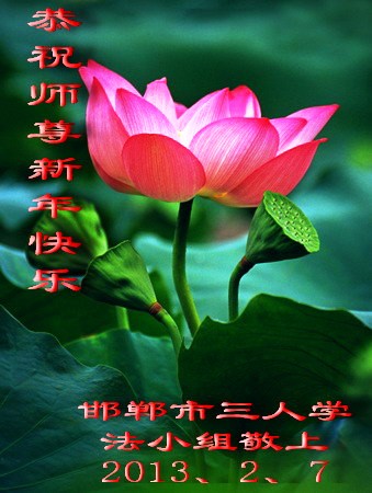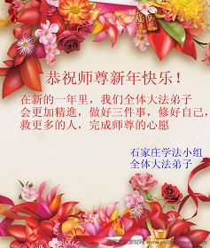 我们学法小组的全体弟子在此恭祝师尊新年快乐!在新的一年里,我们一定听师父的话,多学法,学好法,放下自我,正念正行,加大力度向社会各界讲清真相。