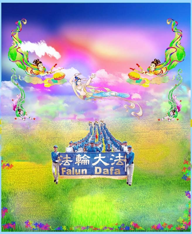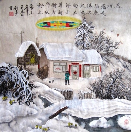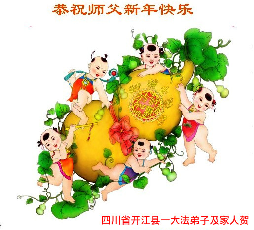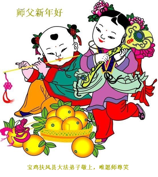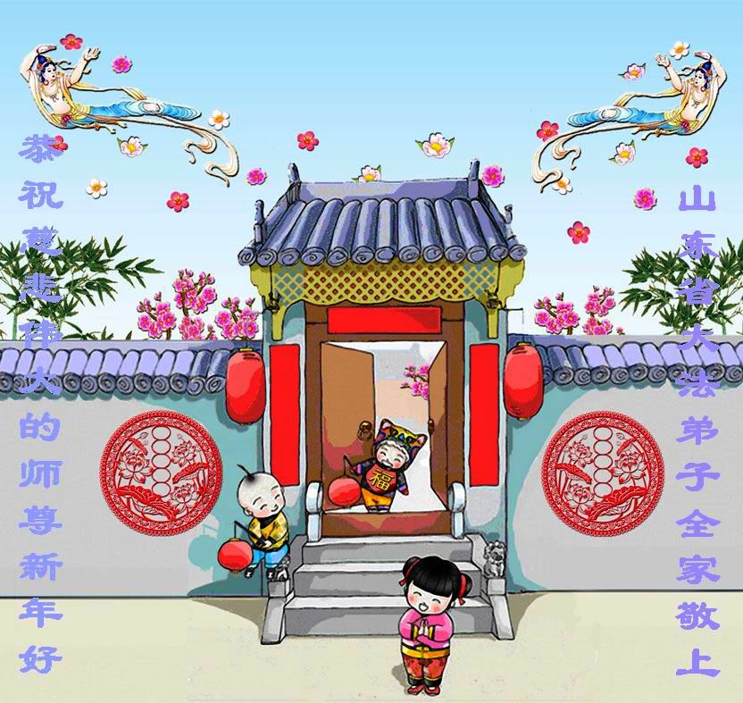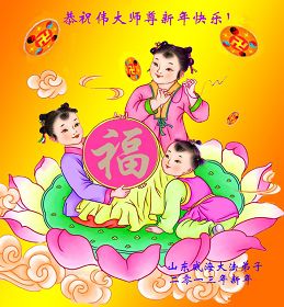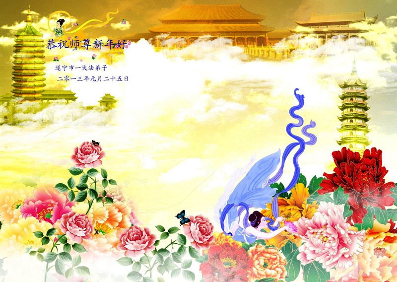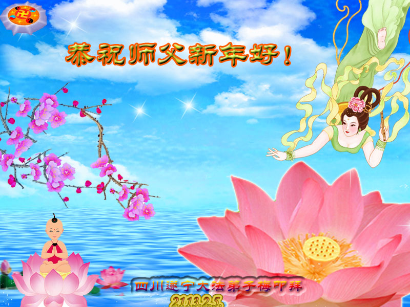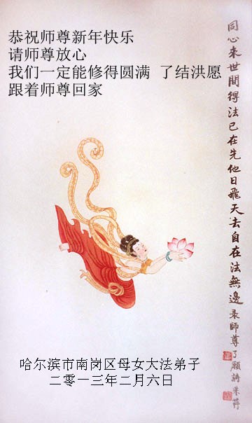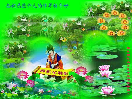 这是大陆同修做的一幅画,恭祝师父新年好。