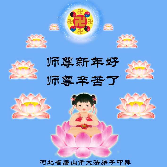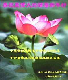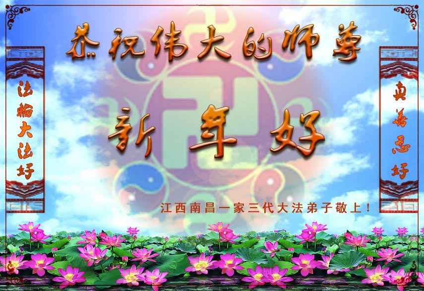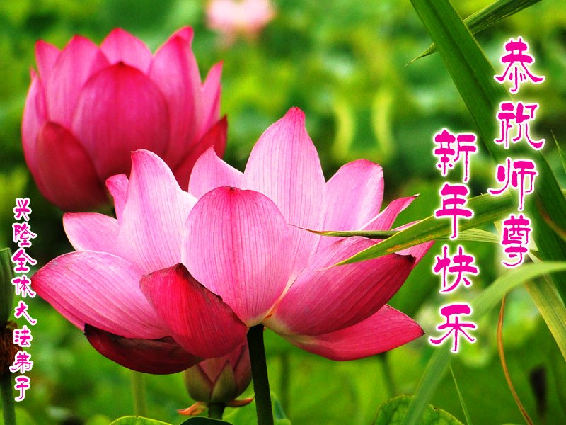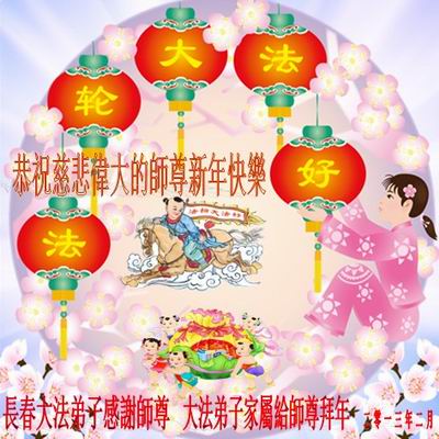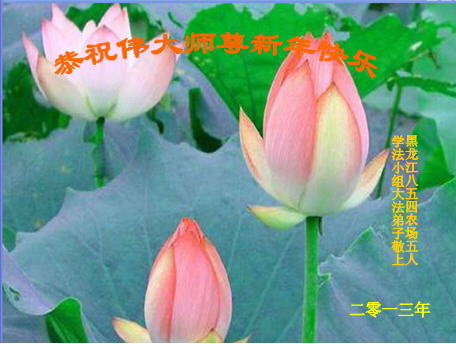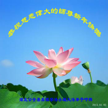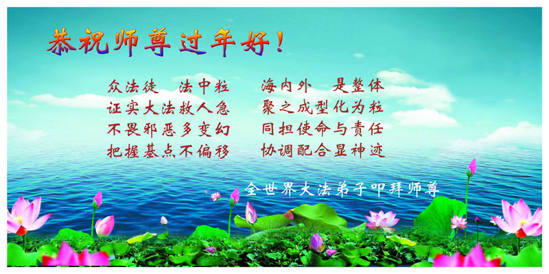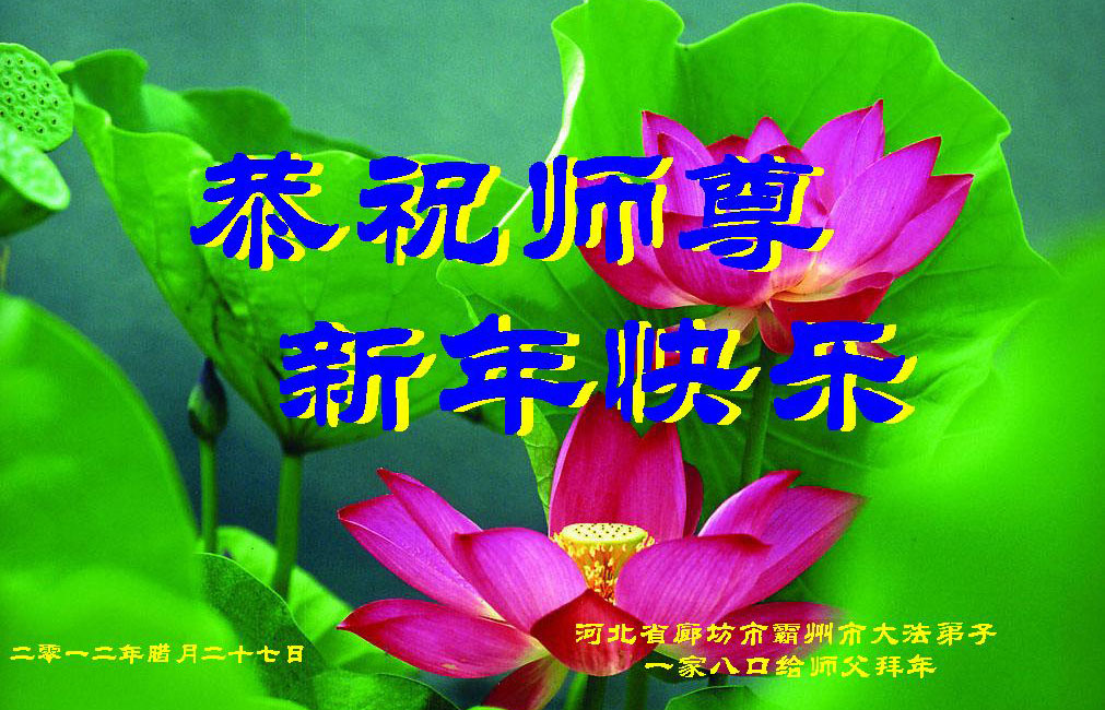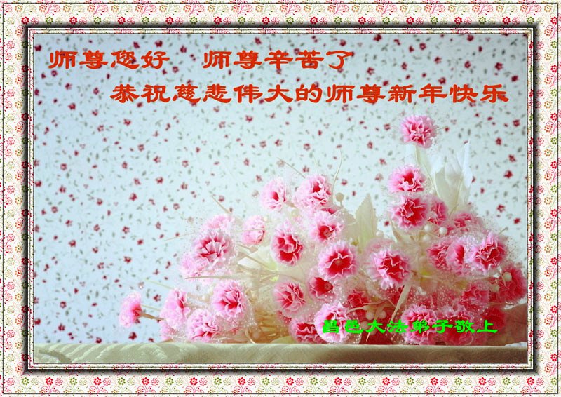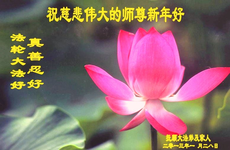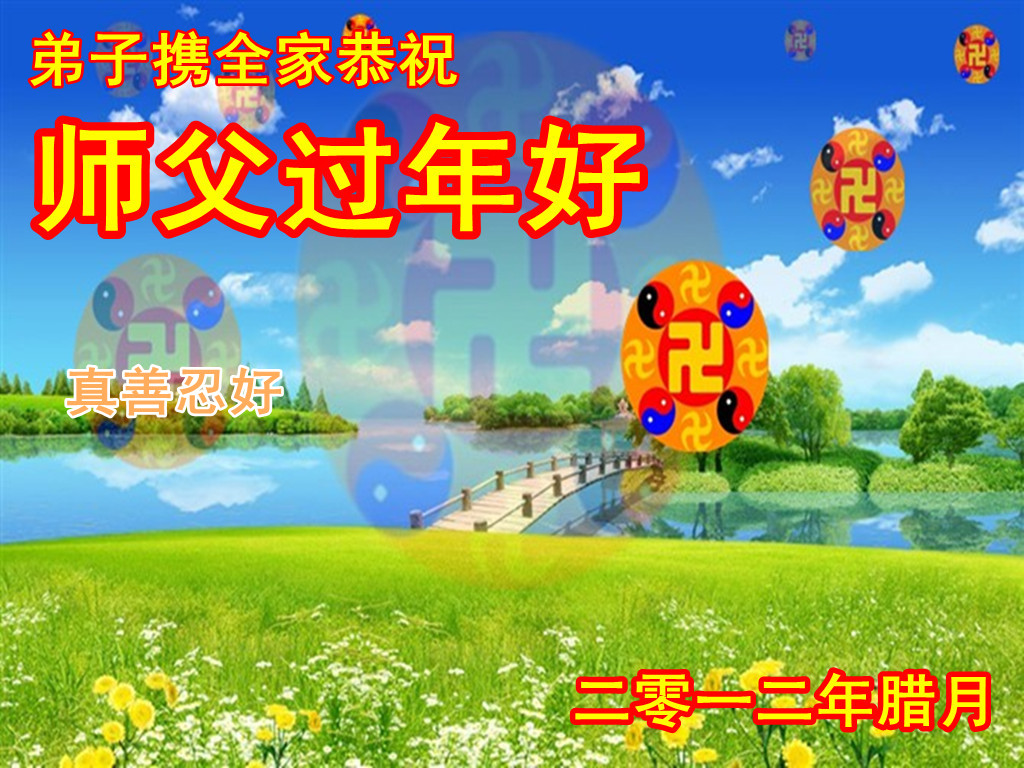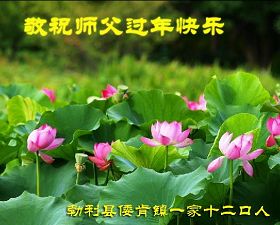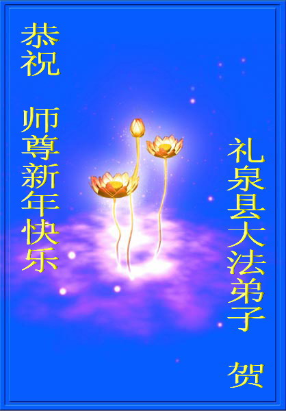 新年之际,我们携亲朋好友向伟大慈悲的李大师敬献崇高的祝福,我们衷心的祝愿李大师新年愉快!同时为报答李大师的慈悲救度,我们要一传十,十传百的告知我们所接触到的世人,告诉他们李大师是真正为救度众生来的,法轮大法是正法,不要再听信中共邪*党-的欺世谎言,帮助大法弟子讲清真相近一点微薄之力。我们感恩李大师!叩拜李大师救度大恩!