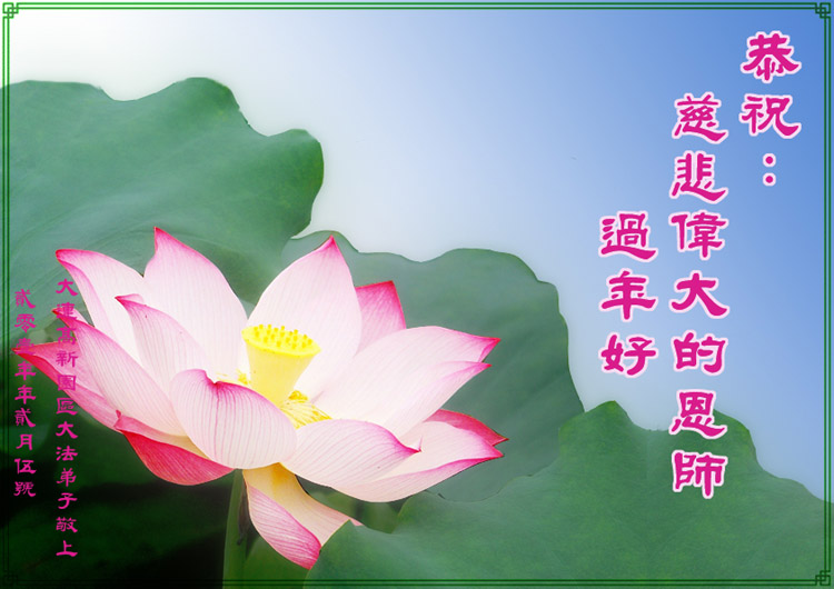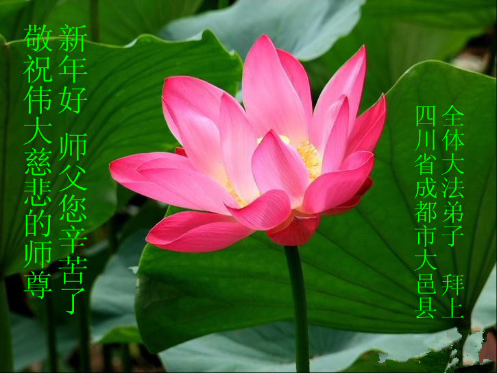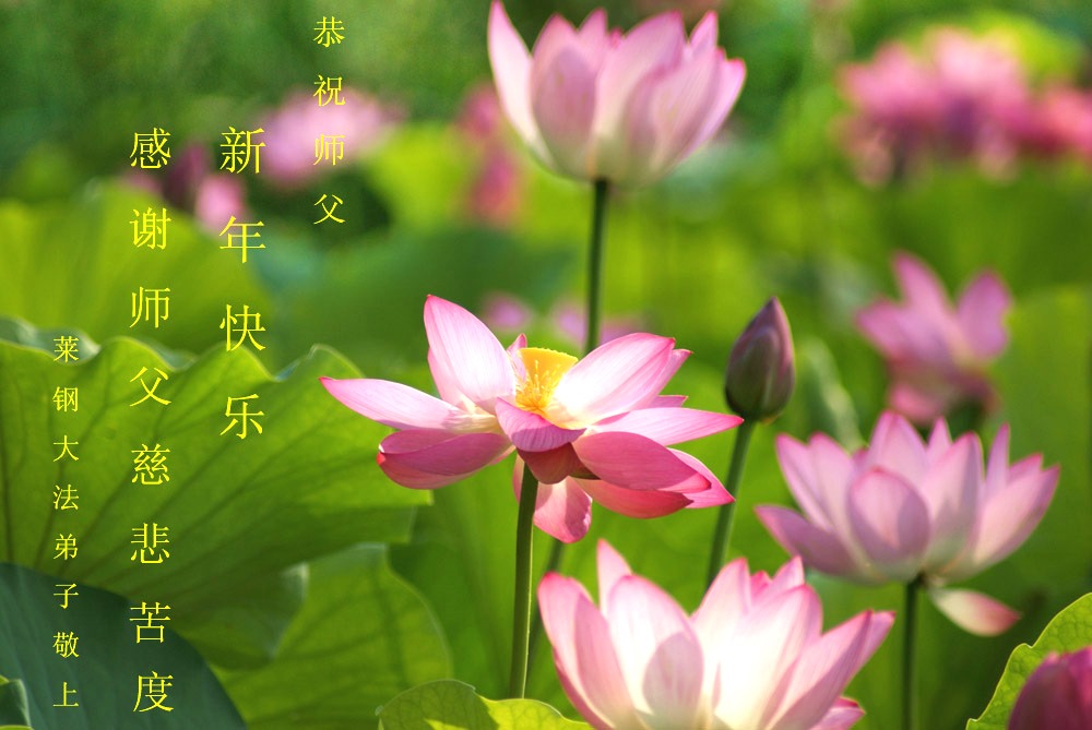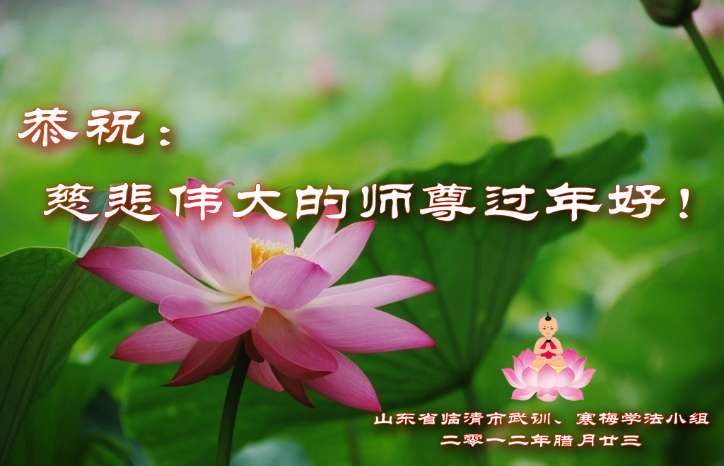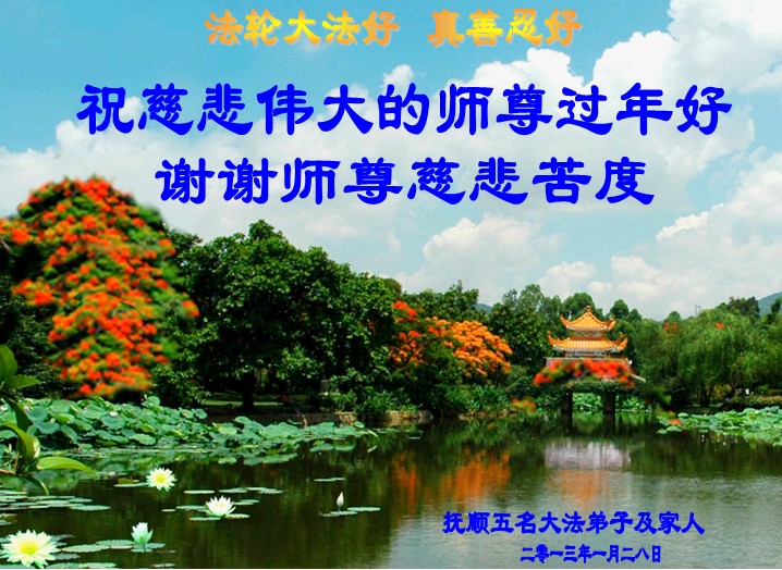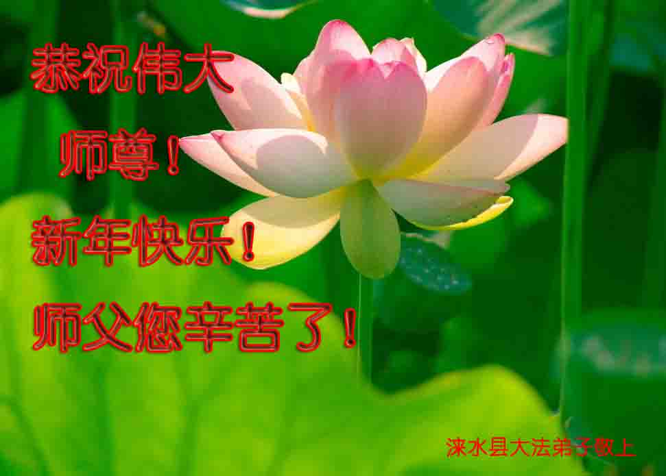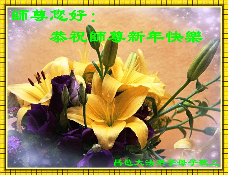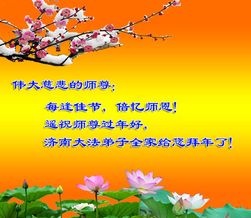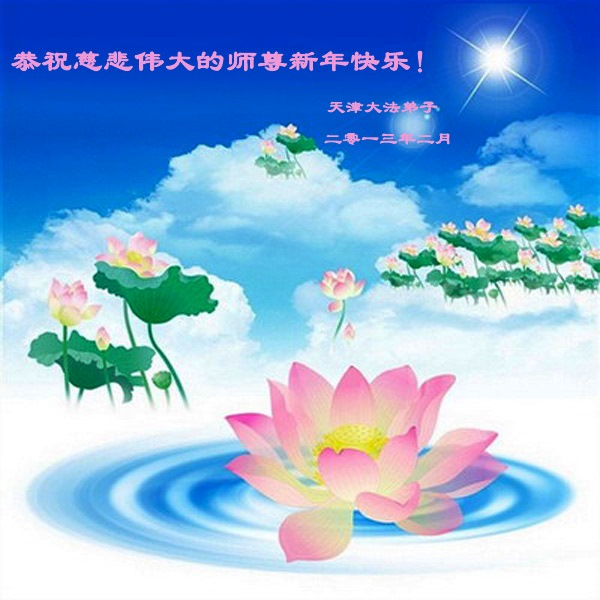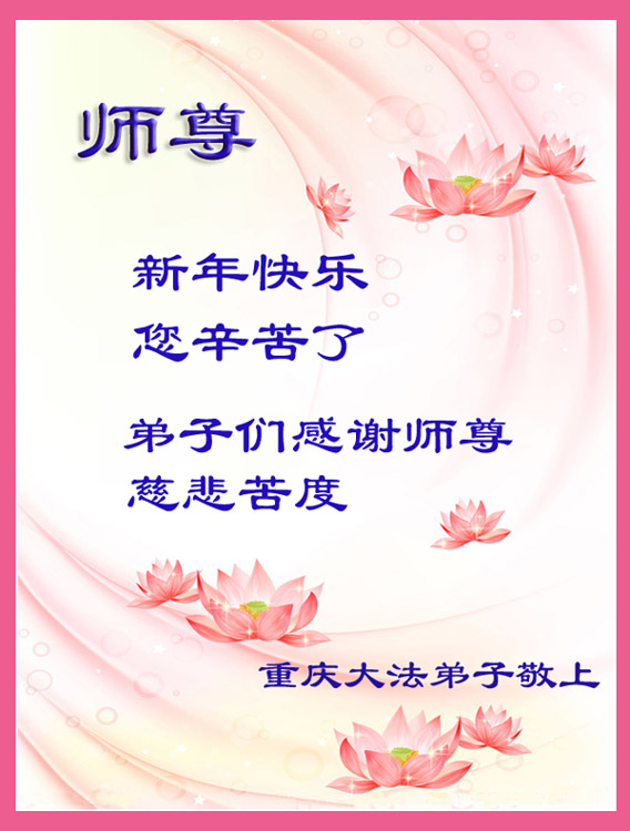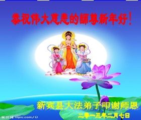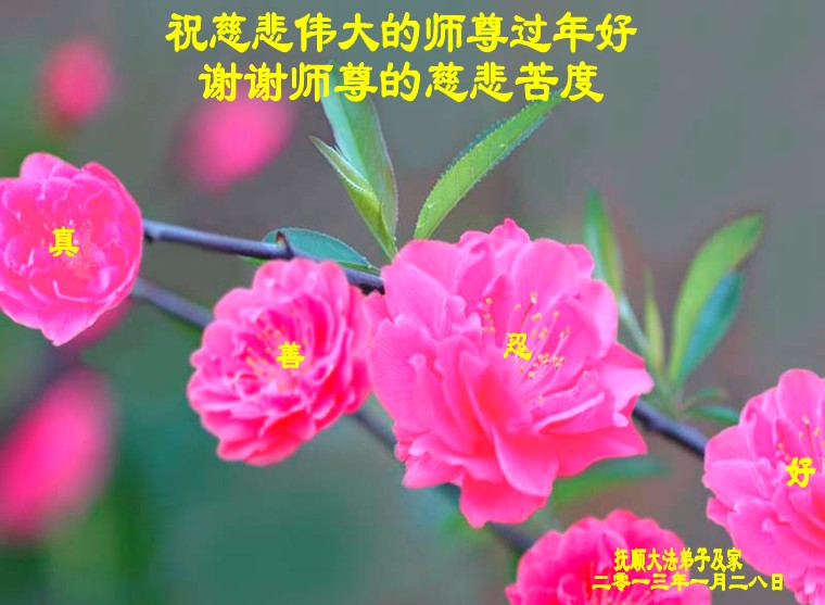 新年之际,我们携亲朋好友向伟大慈悲的李大师敬献崇高的祝福,我们衷心的祝愿李大师新年愉快!同时为报答李大师的慈悲救度,我们要一传十,十传百的告知我们所接触到的世人,告诉他们李大师是真正为救度众生来的,法轮大法是正法,不要再听信中共邪*党-的欺世谎言,帮助大法弟子讲清真相近一点微薄之力。我们感恩李大师!叩拜李大师救度大恩!