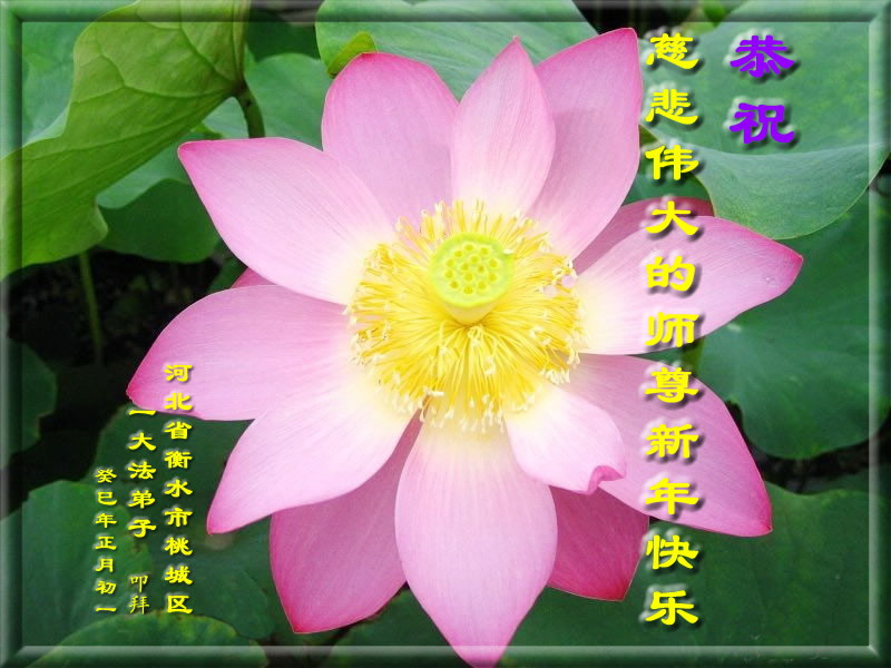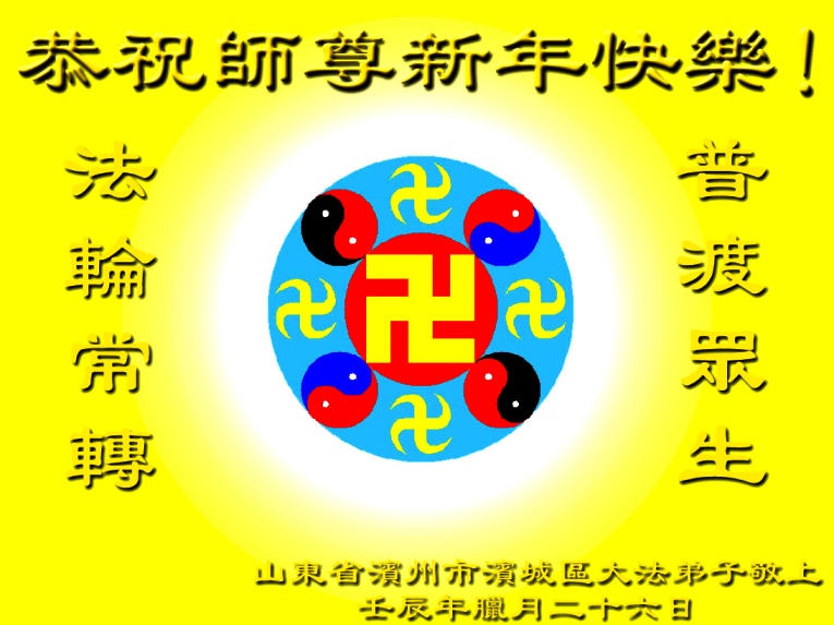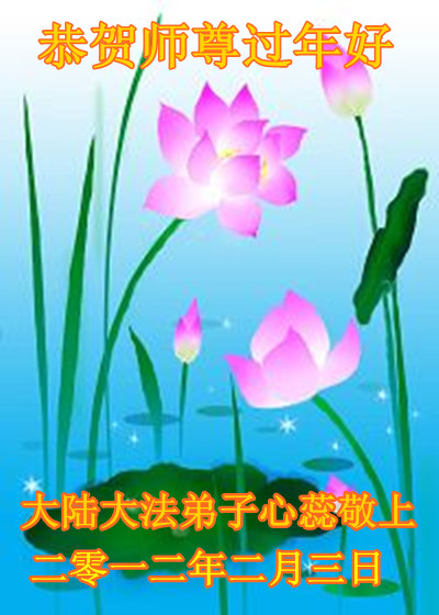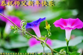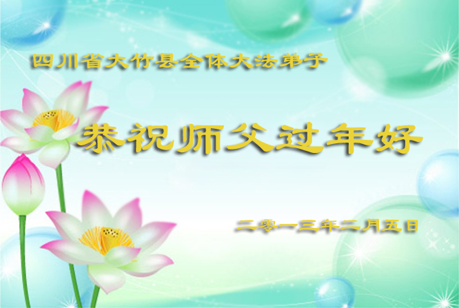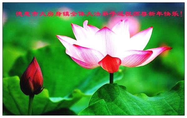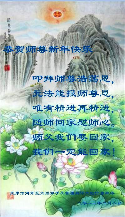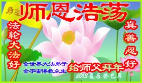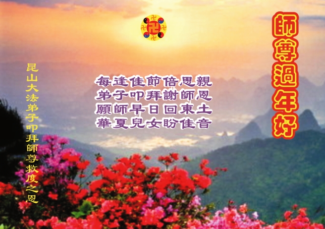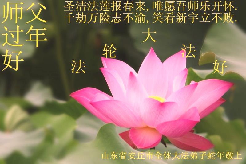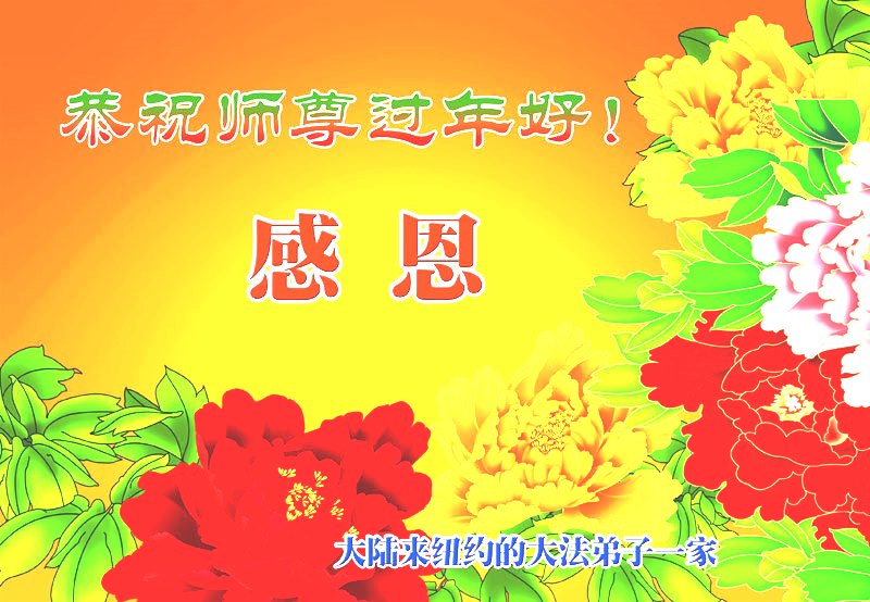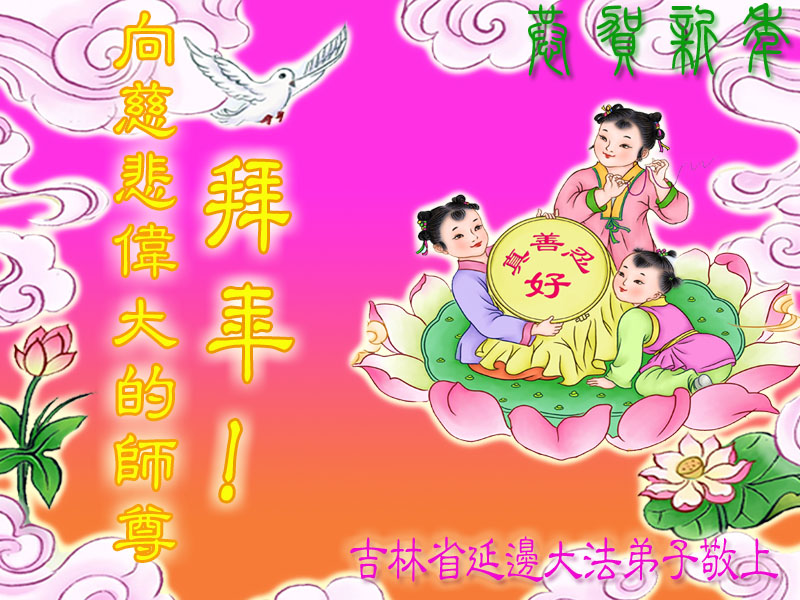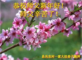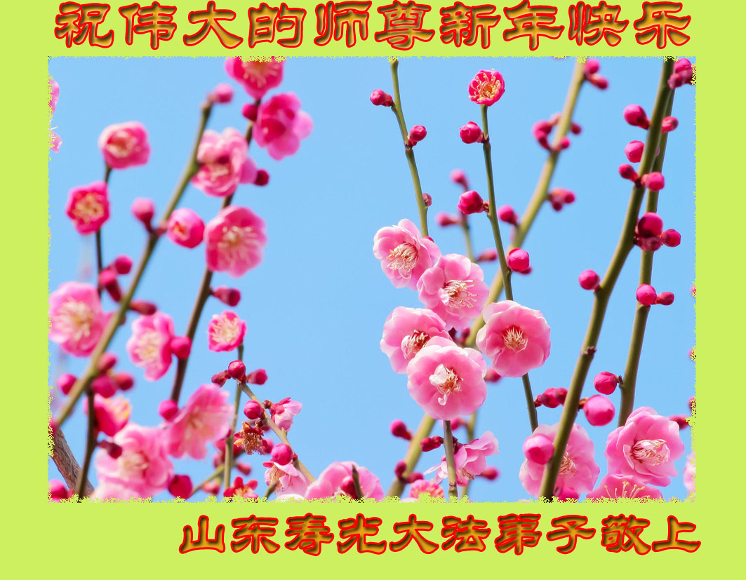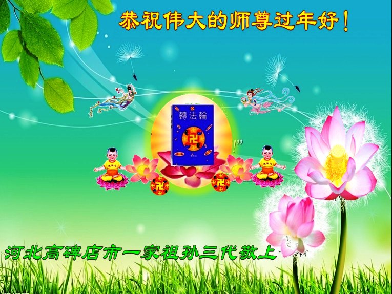 新年之际,我们携亲朋好友向伟大慈悲的李大师敬献崇高的祝福,我们衷心的祝愿李大师新年愉快!同时为报答李大师的慈悲救度,我们要一传十,十传百的告知我们所接触到的世人,告诉他们李大师是真正为救度众生来的,法轮大法是正法,不要再听信中共邪*党-的欺世谎言,帮助大法弟子讲清真相近一点微薄之力。我们感恩李大师!叩拜李大师救度大恩!