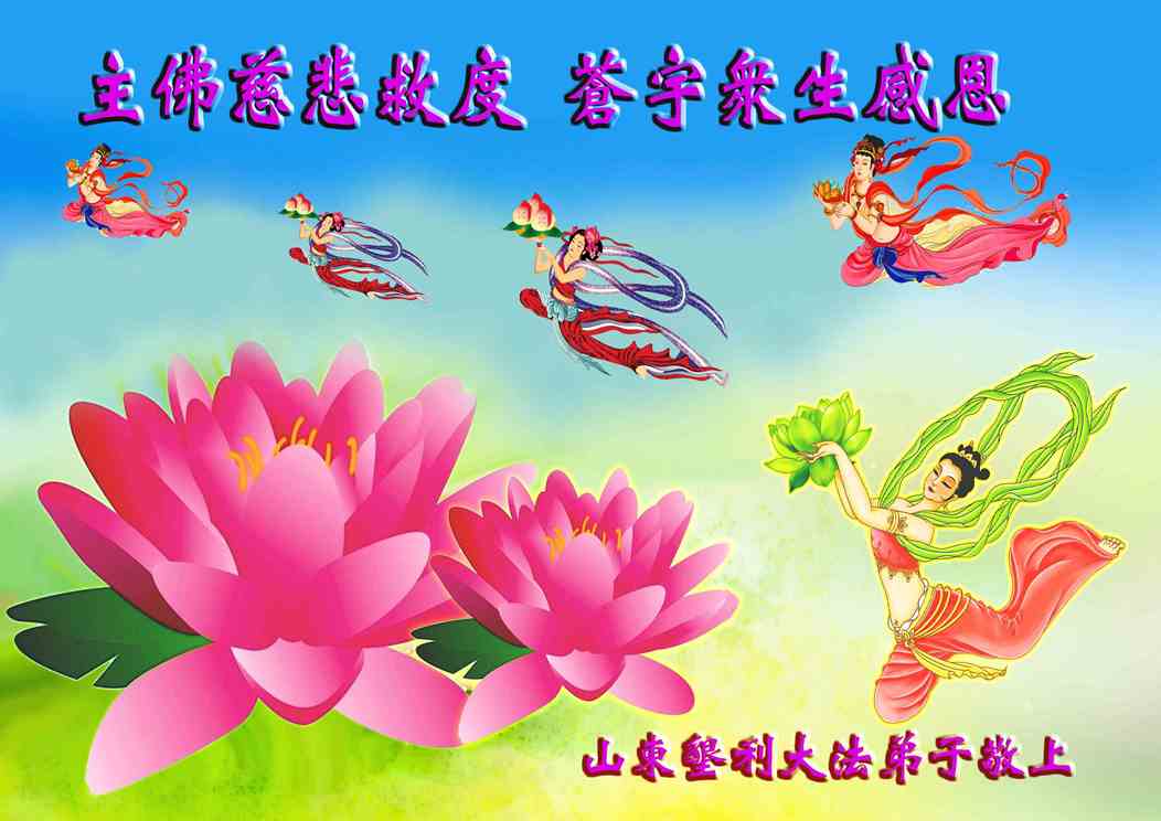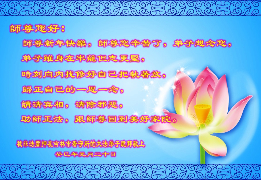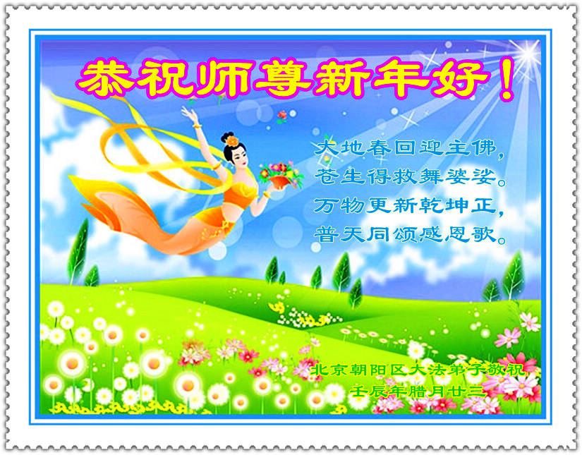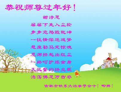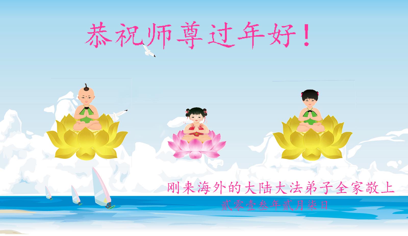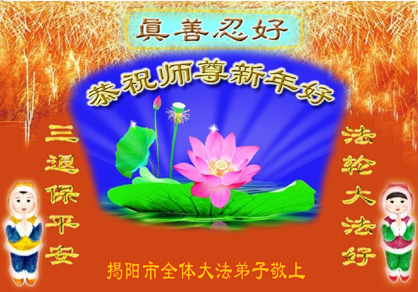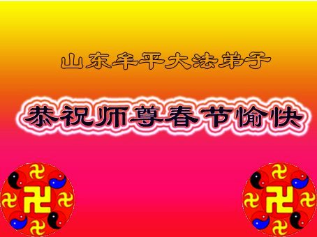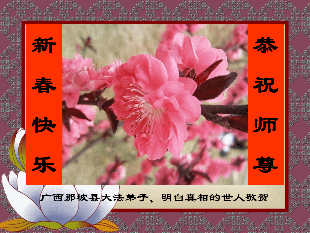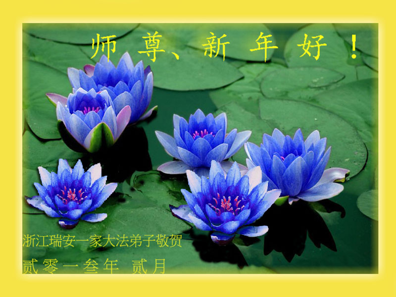 新年之际,我们携亲朋好友向伟大慈悲的李大师敬献崇高的祝福,我们衷心的祝愿李大师新年愉快!同时为报答李大师的慈悲救度,我们要一传十,十传百的告知我们所接触到的世人,告诉他们李大师是真正为救度众生来的,法轮大法是正法,不要再听信中共邪*党-的欺世谎言,帮助大法弟子讲清真相近一点微薄之力。我们感恩李大师!叩拜李大师救度大恩!