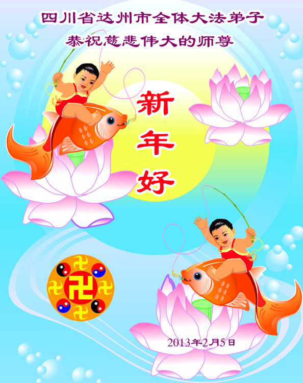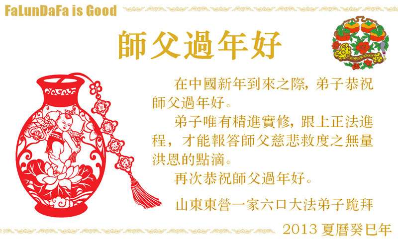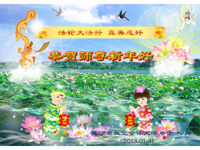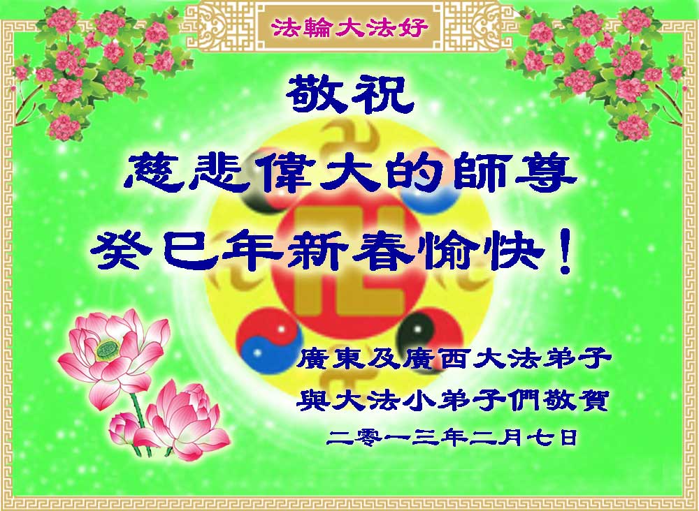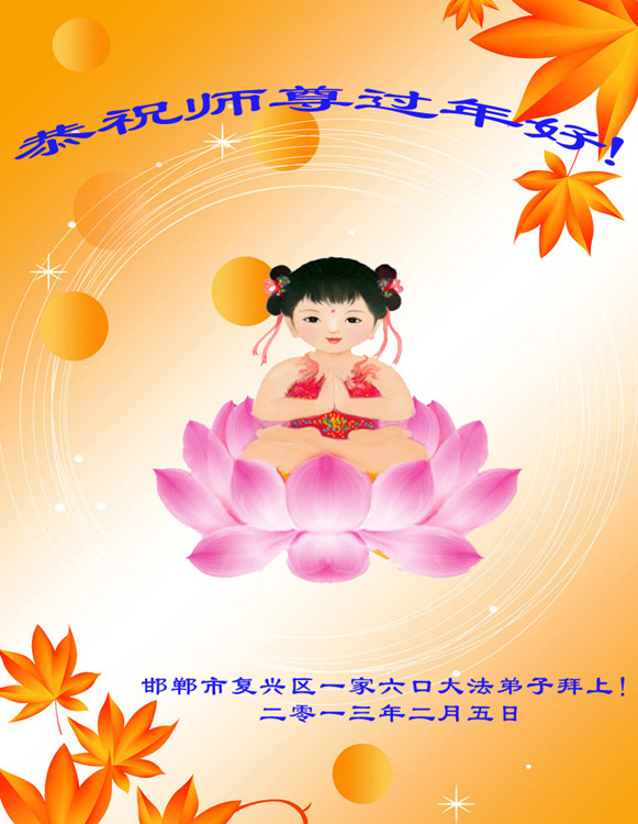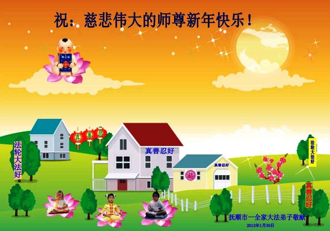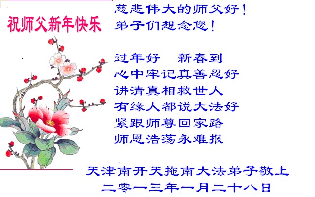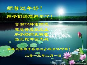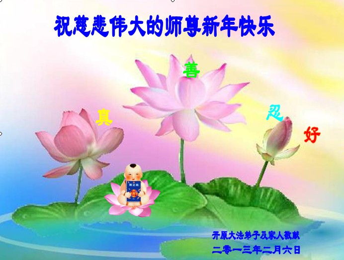 <英文版: http://en.d2s3ombhnov3zf.cloudfront.net/html/articles/2013/2/12/137822.html>香港全体大法弟子恭祝师尊新年好