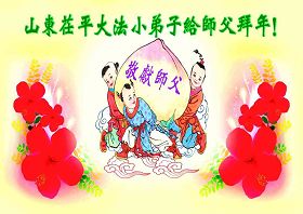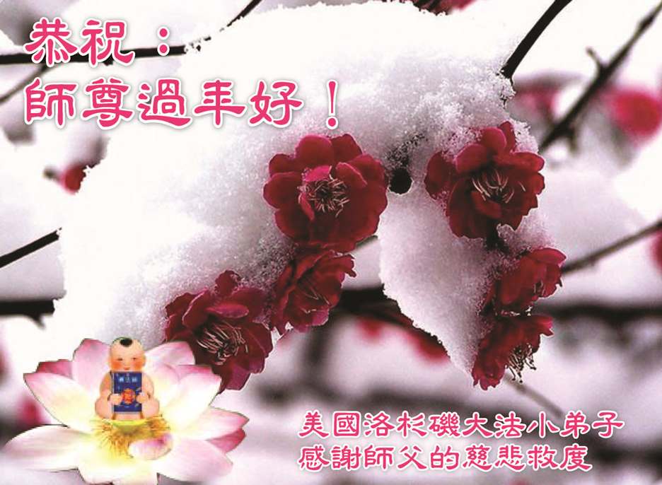 在美国的青岛全体大法弟子祝慈悲伟大的师父新年快乐!在新的一年里,我们的修炼会更加精進,做好三件事,抓紧救度有缘众生,不愧对正法时期大法弟子的称号!沐浴在师父的法光中,我们倍感激动,叩谢师恩,不辜负师父的慈悲苦度!