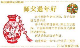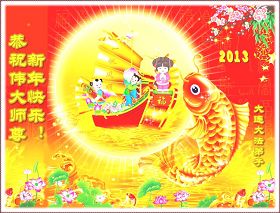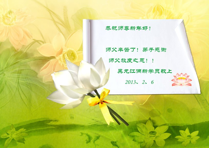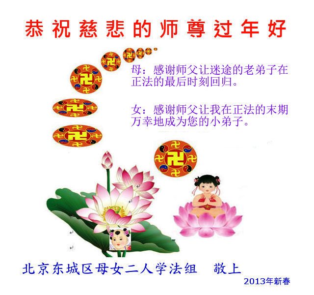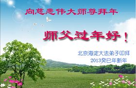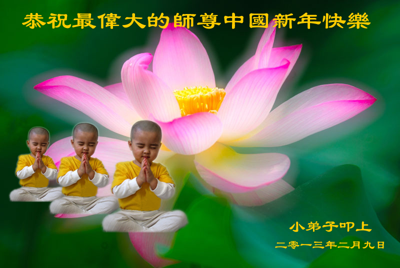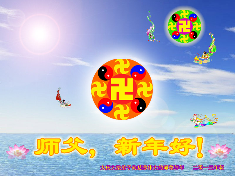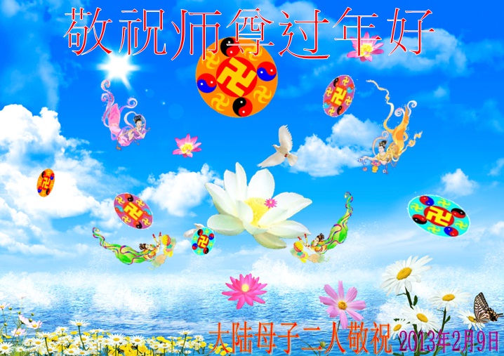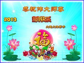 二零一三年传统过大年喜庆佳节来临,弟子首先跪拜,叩头给师尊拜年!叩谢师尊对众苍生救度之恩!