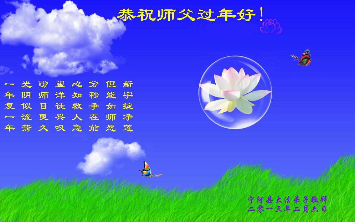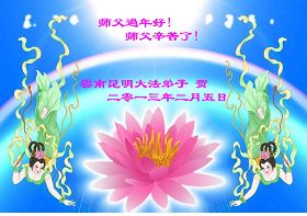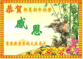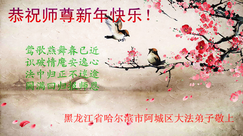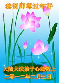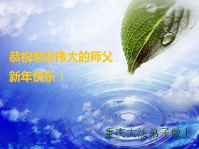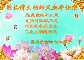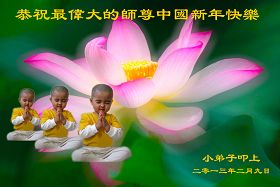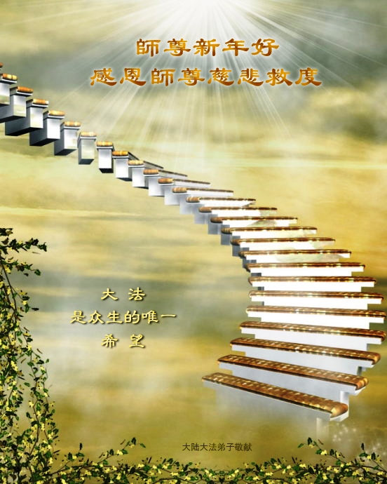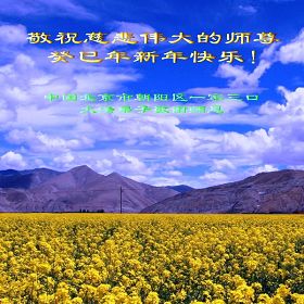 在新的一年,弟子一定扎扎实实学好法,转变观念一点一滴向内找,向内修,一定能修去怨恨心,爱面子心,和其它人心,做好师尊叫做好的三件事。救度更多的众生。盼望师尊早日回国和师尊团聚,跟师尊回家。