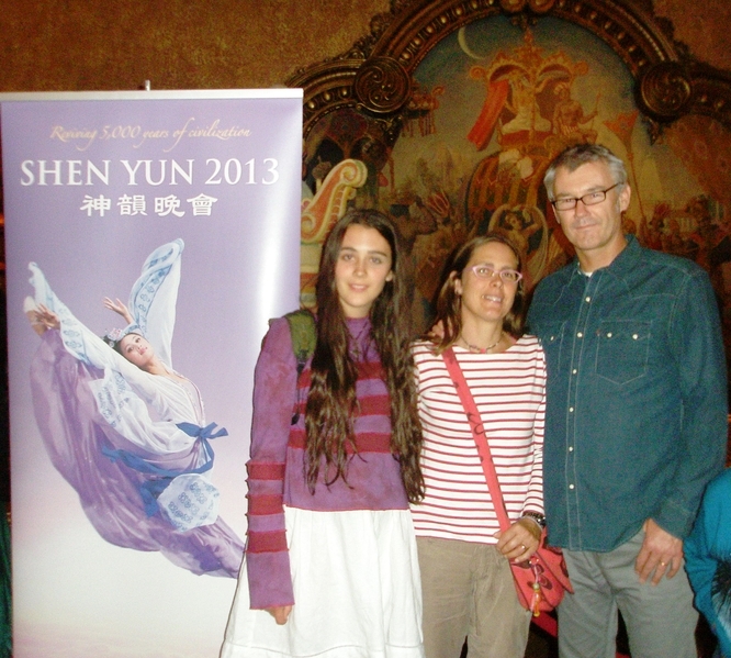 吉利斯先生介绍说,在演出前的一天,女儿有幸得到了一张法轮大法的光碟,并在演出前看了该光碟。女儿雅丝米娜(Yasmina)说:“当演出中表现法轮功遭受迫害时,我对其背景已有所了解。这种迫害仍在进行,这真是太恐怖了。”吉利斯的妻子芬彬尼(Fabinne)是一所私立学校的老师,她说:“他们并没有做错什么,为什么遭受迫害。”吉利斯先生说:“难以置信的是,许多人并不知道这种迫害。这正像历史上对正教信仰的迫害重演。我曾两次去过中国。对中国的情况有所了解。他说,共产党让我们看到的只是掩盖。”