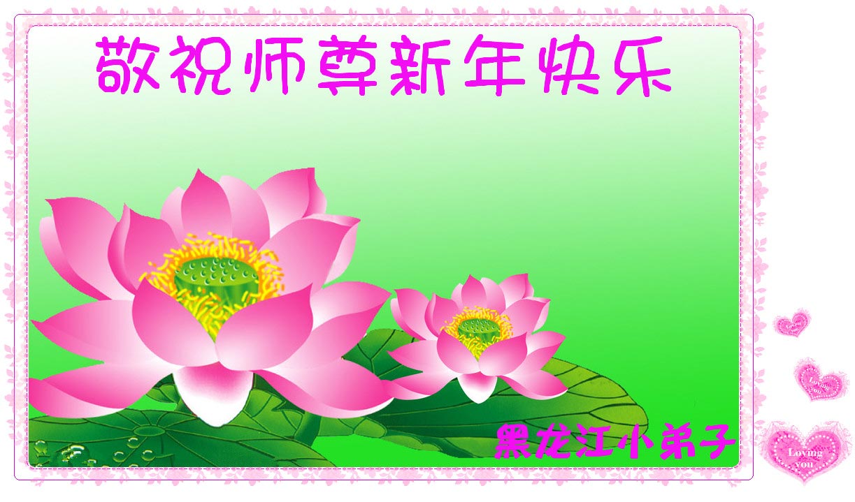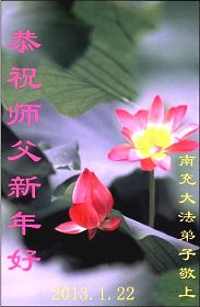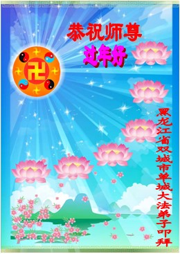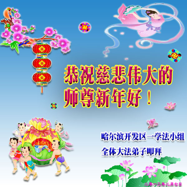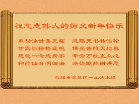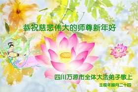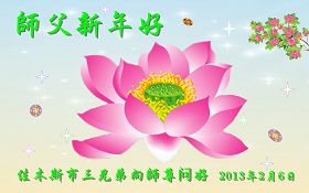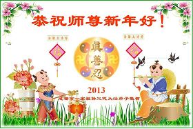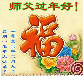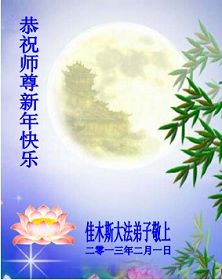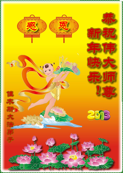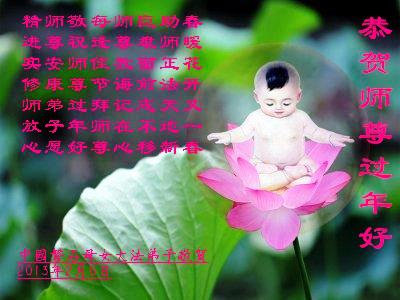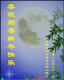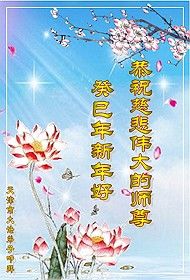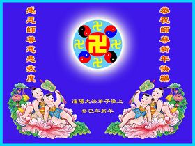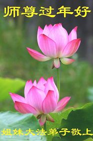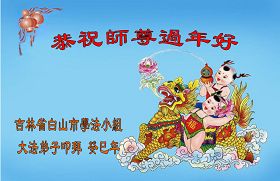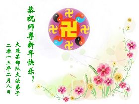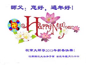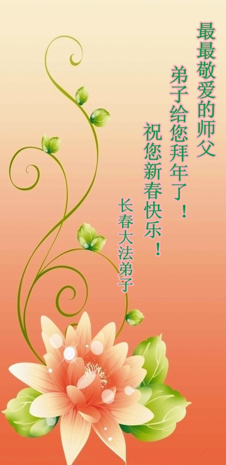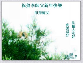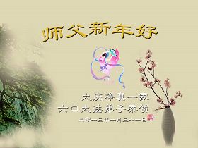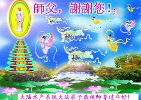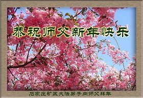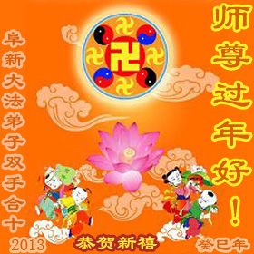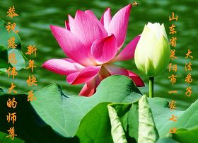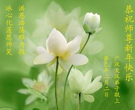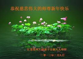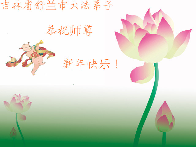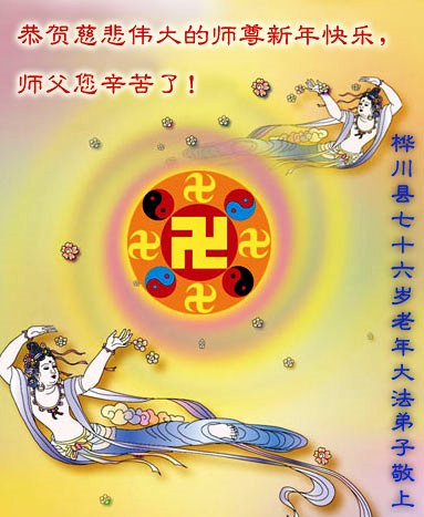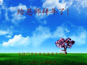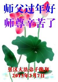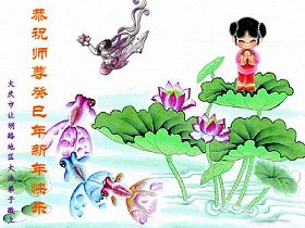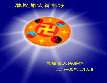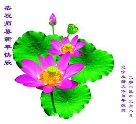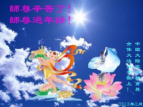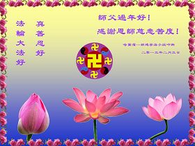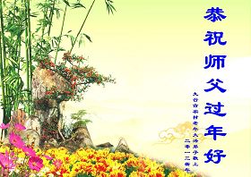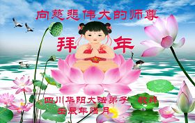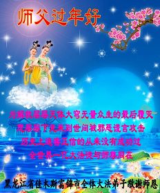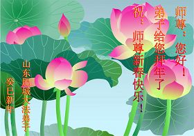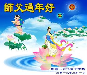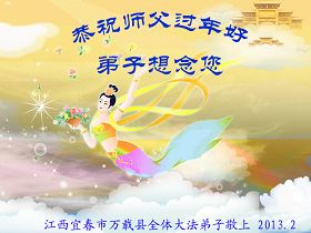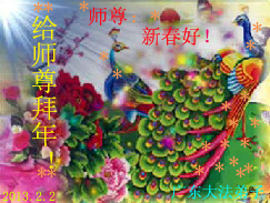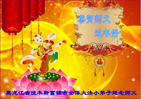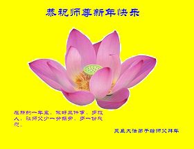 我是在大法中受益的,是李洪志师父给了我第二次生命,我非常感谢大法师父的洪恩浩荡,我会尽我的所能,告诉世人大法的美好,在此新春佳节之际祝李 老师新春快乐!!