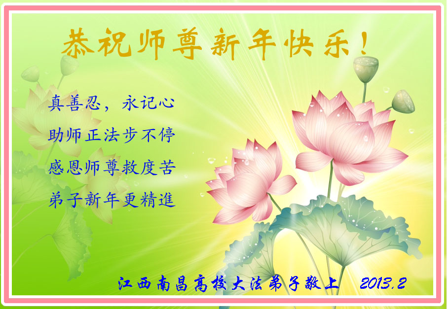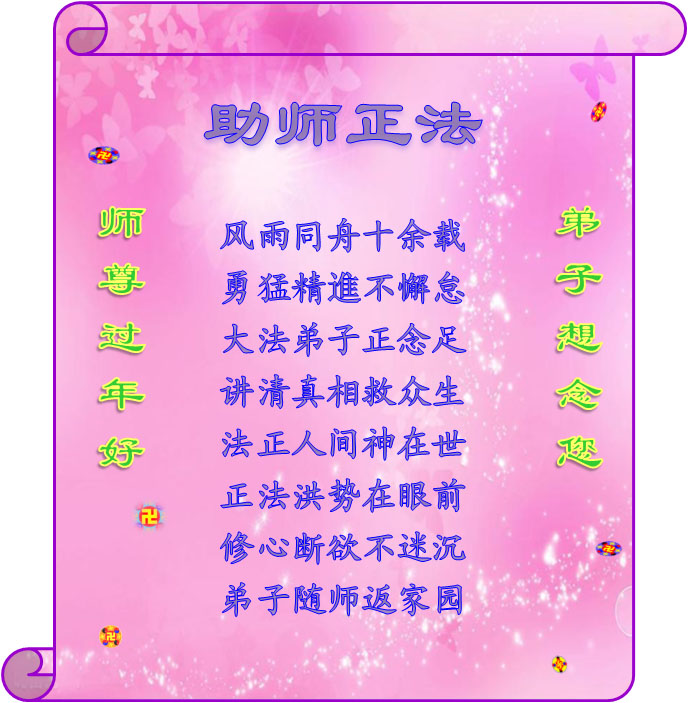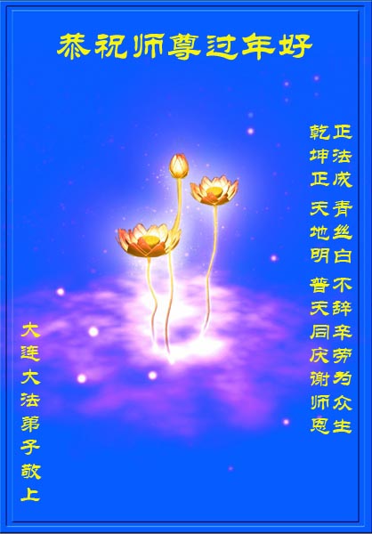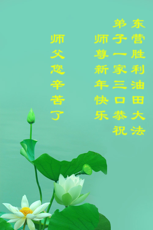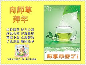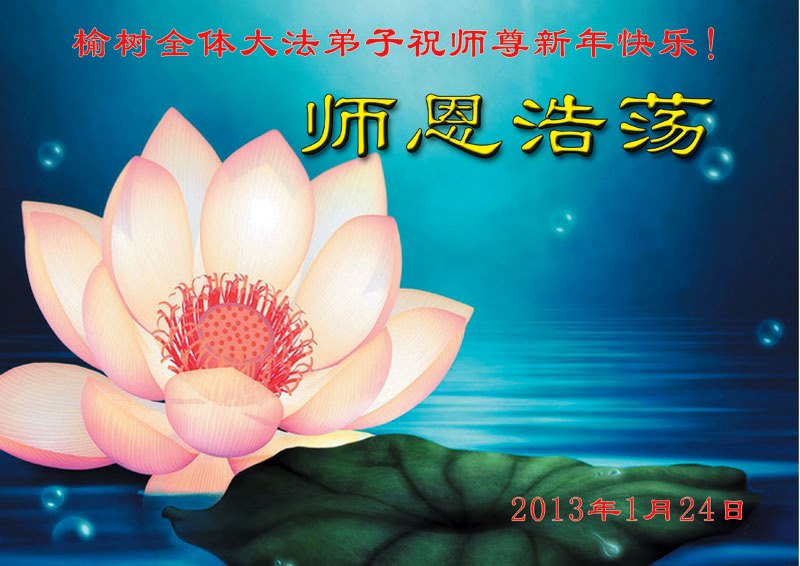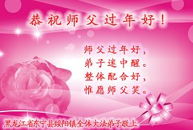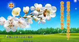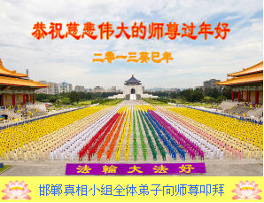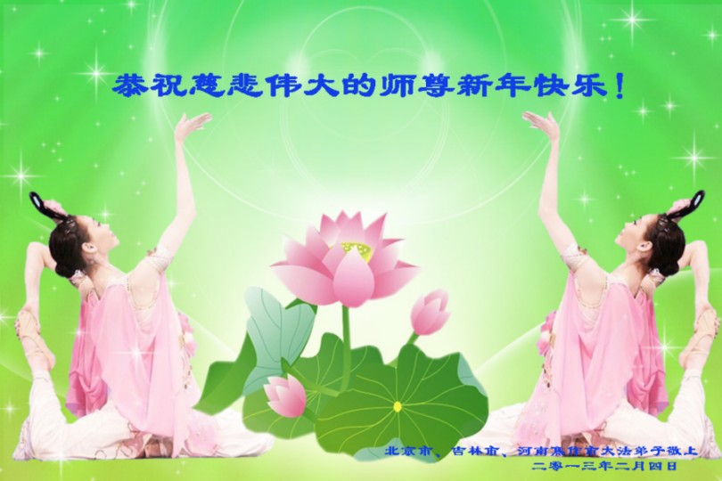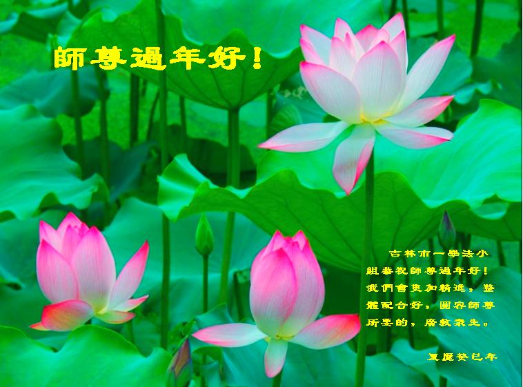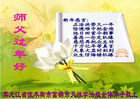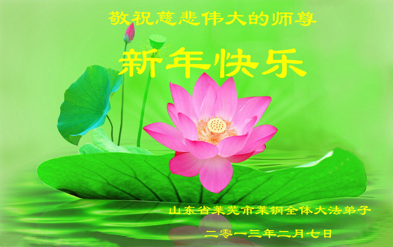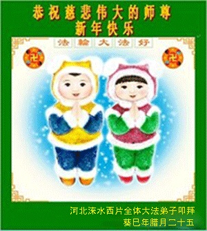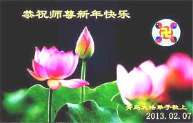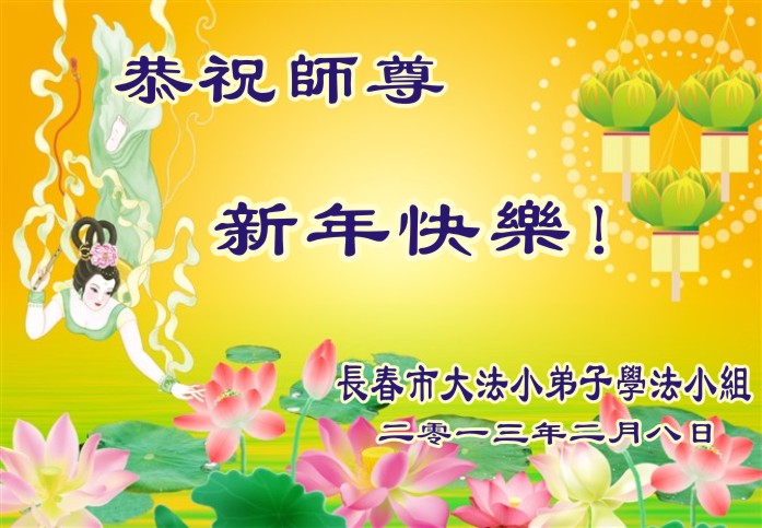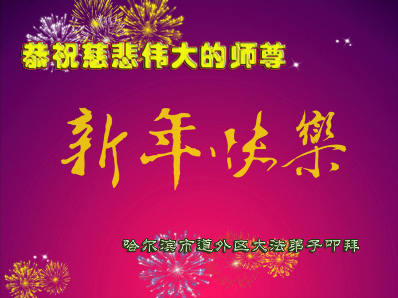 我是在大法中受益的,是李洪志师父给了我第二次生命,我非常感谢大法师父的洪恩浩荡,我会尽我的所能,告诉世人大法的美好,在此新春佳节之际祝李 老师新春快乐!!