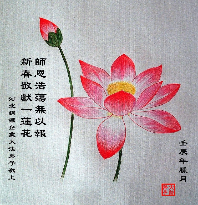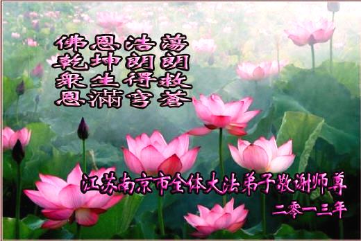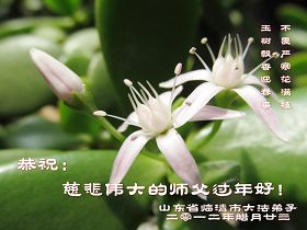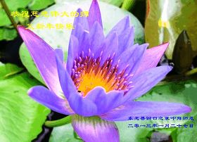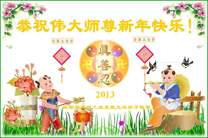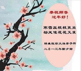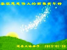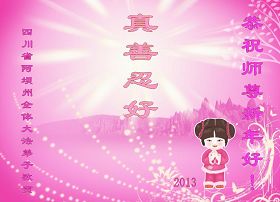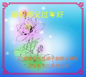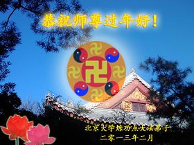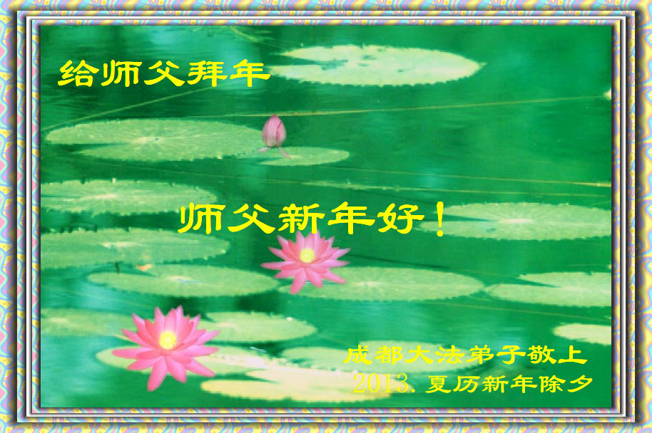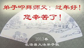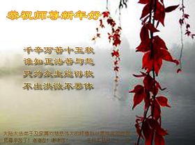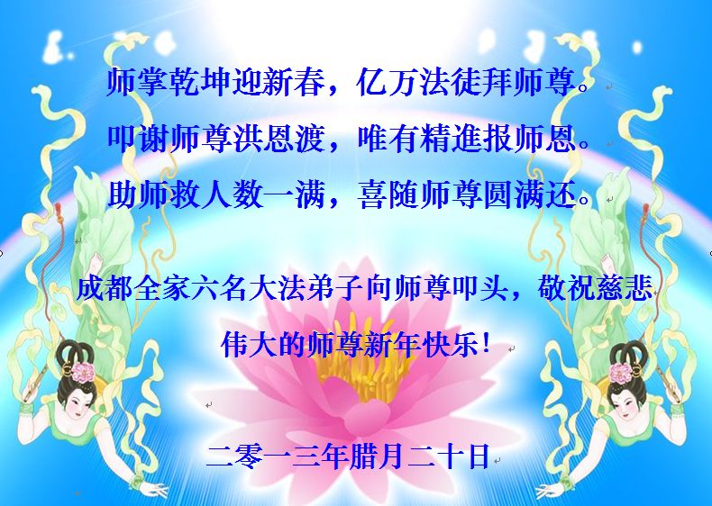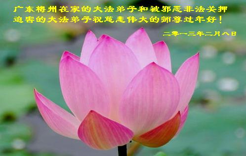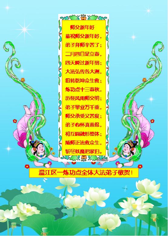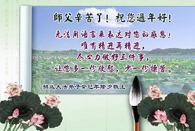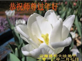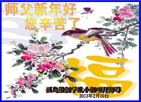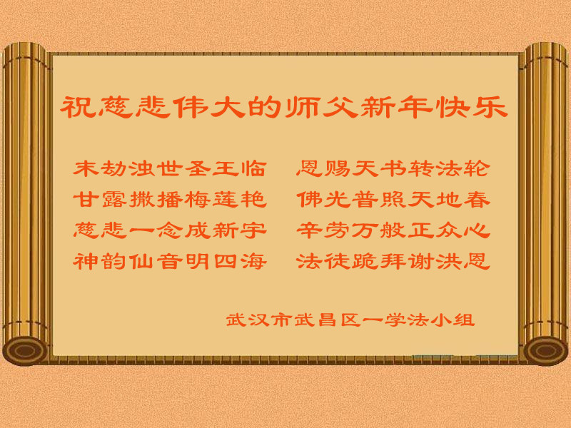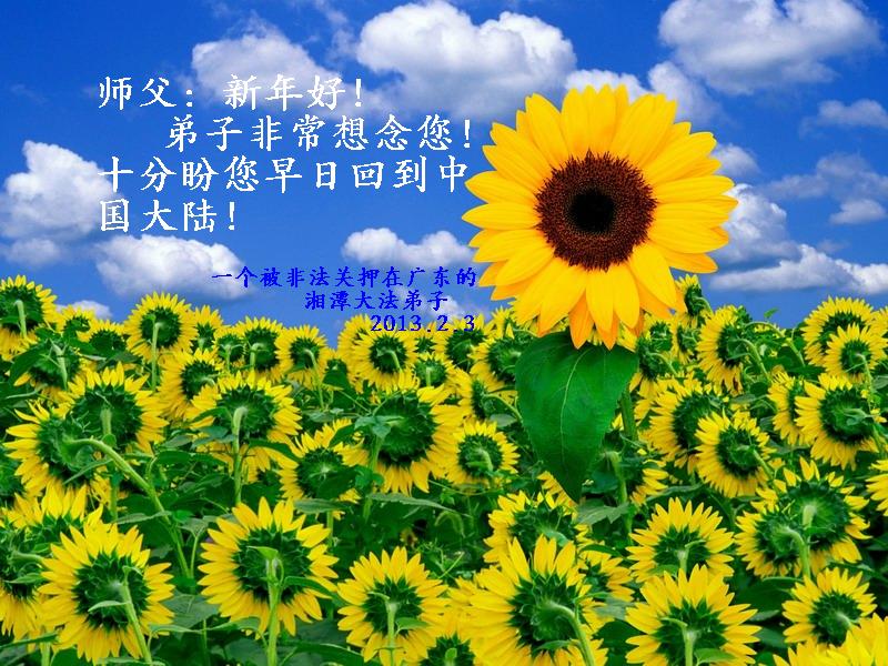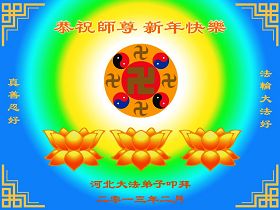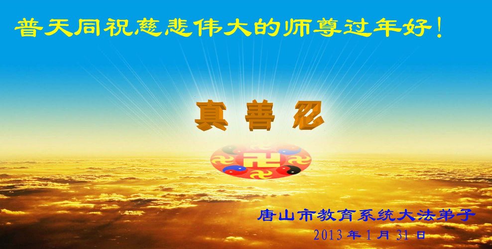 我是在大法中受益的,是李洪志师父给了我第二次生命,我非常感谢大法师父的洪恩浩荡,我会尽我的所能,告诉世人大法的美好,在此新春佳节之际祝李 老师新春快乐!!