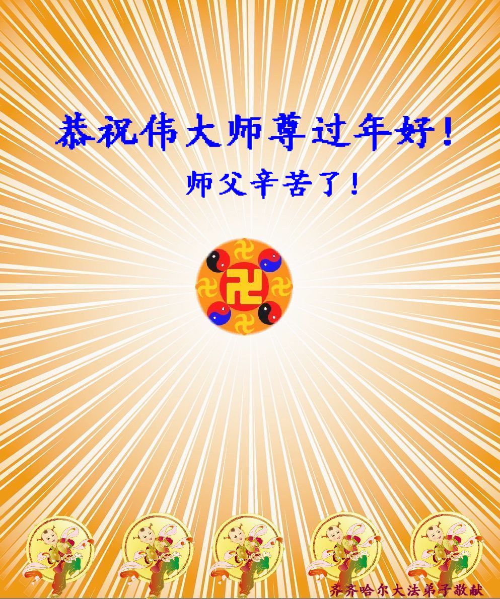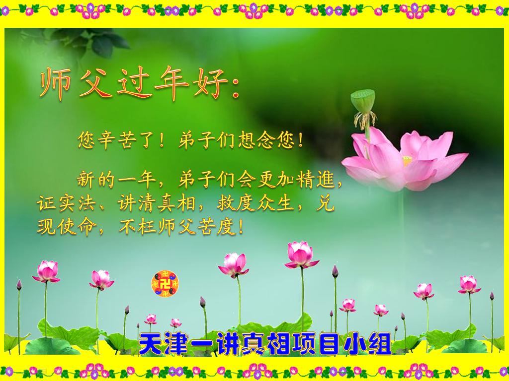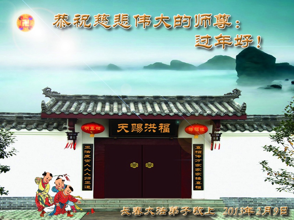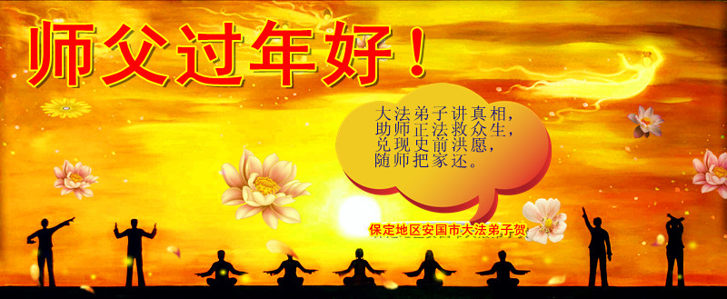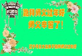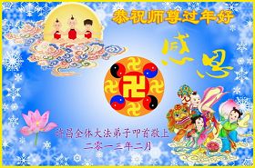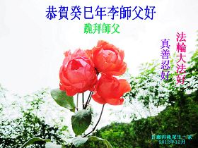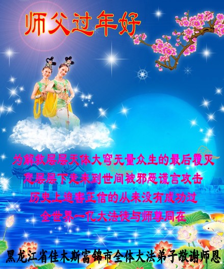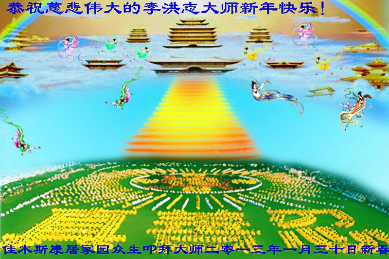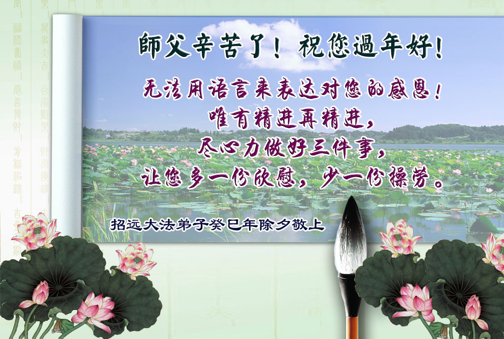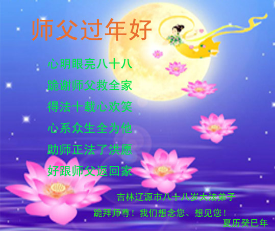 明真相的家人恭祝李洪志师父过年好,新年快乐!感谢您的救度,非常的感谢,祝您永远都快乐!诚心拜上。