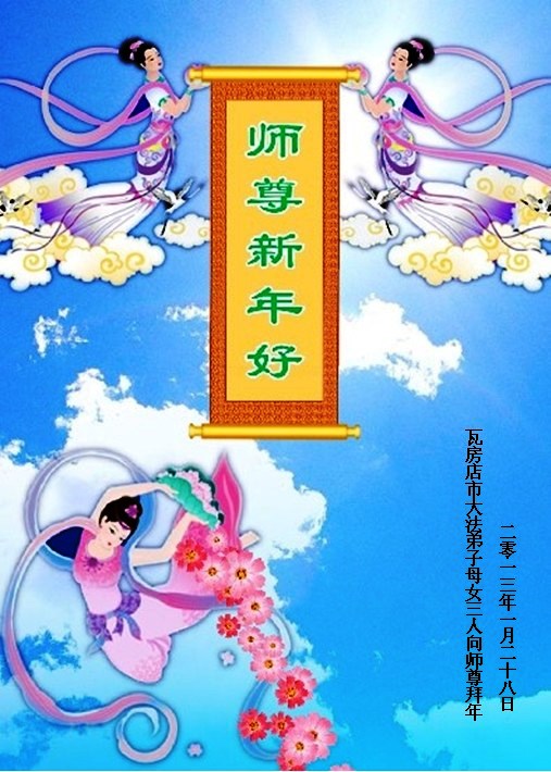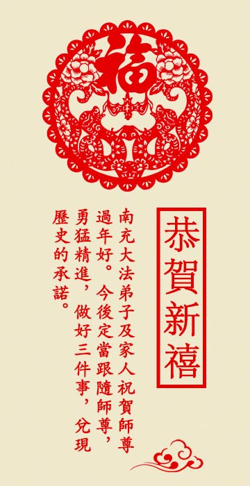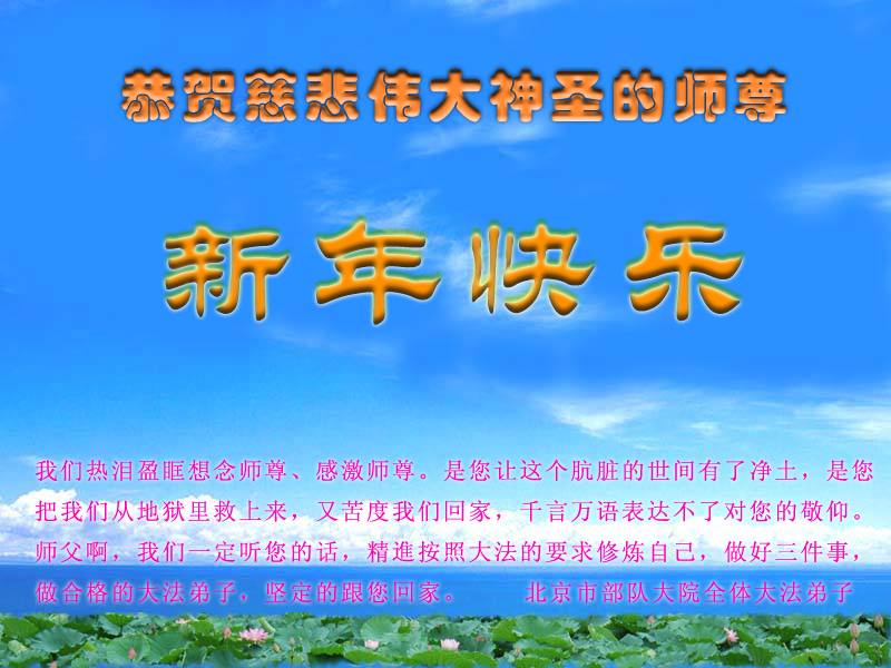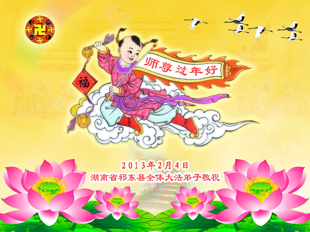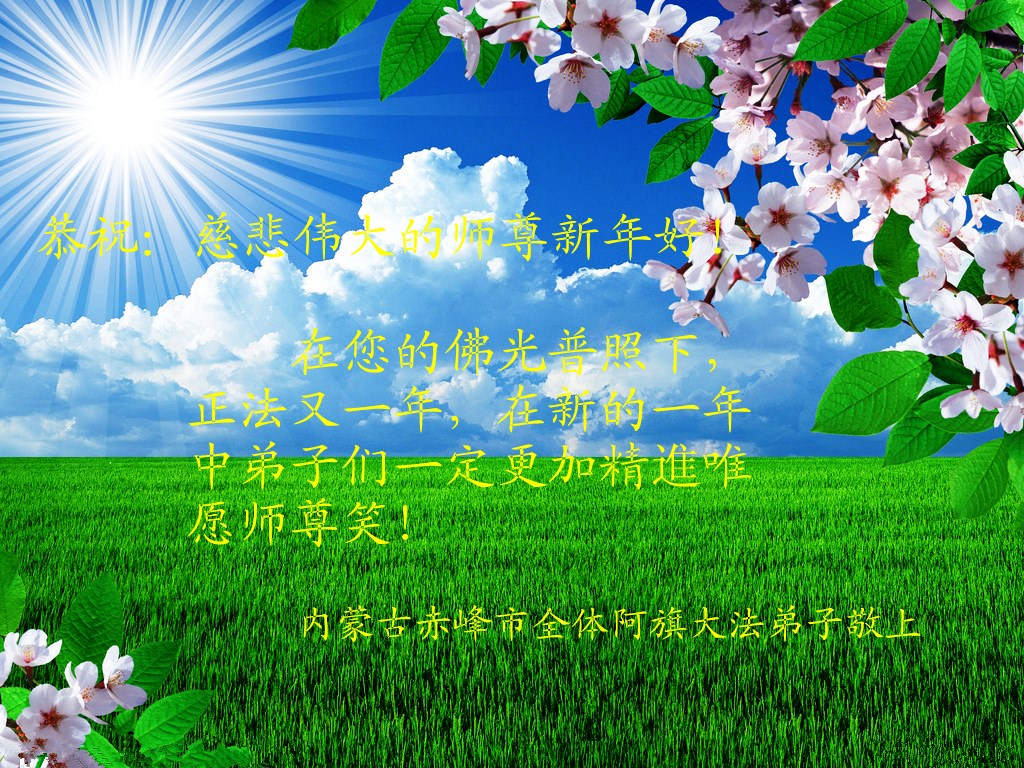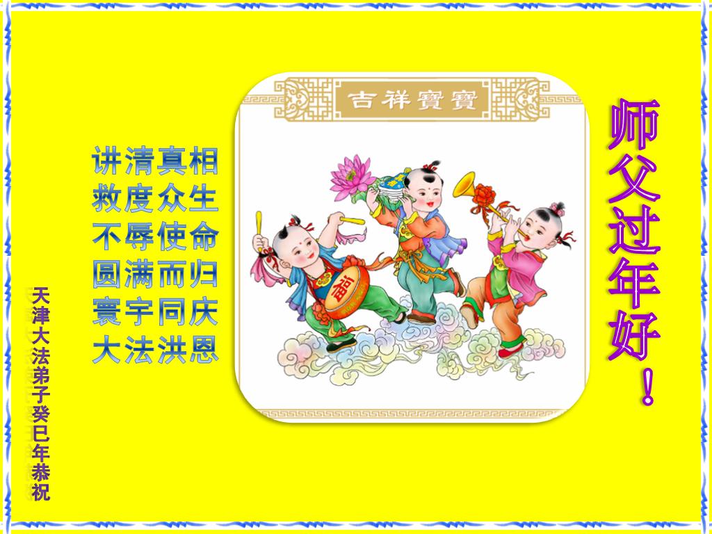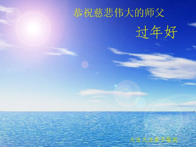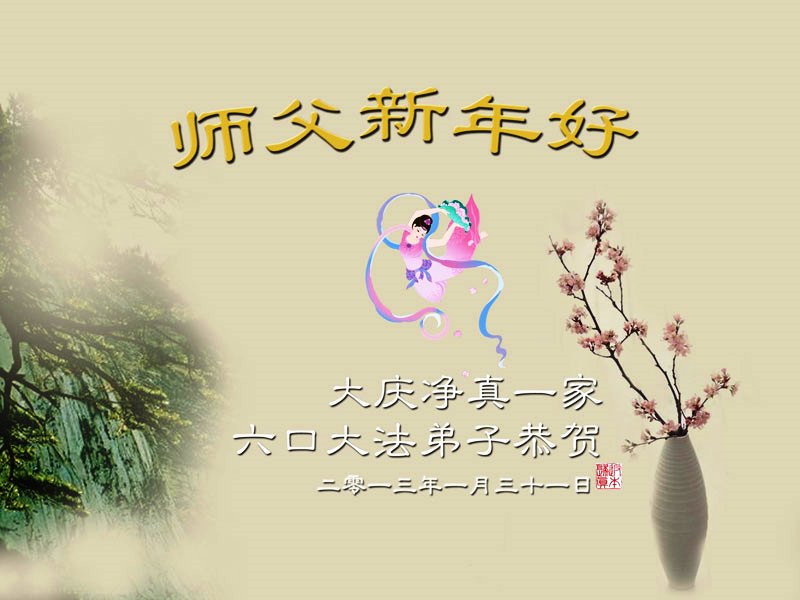 明真相的家人恭祝李洪志师父过年好,新年快乐!感谢您的救度,非常的感谢,祝您永远都快乐!诚心拜上。