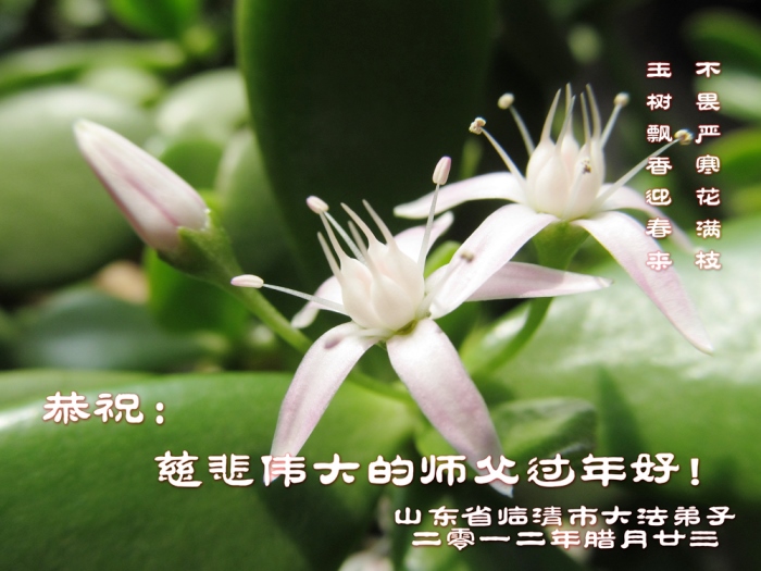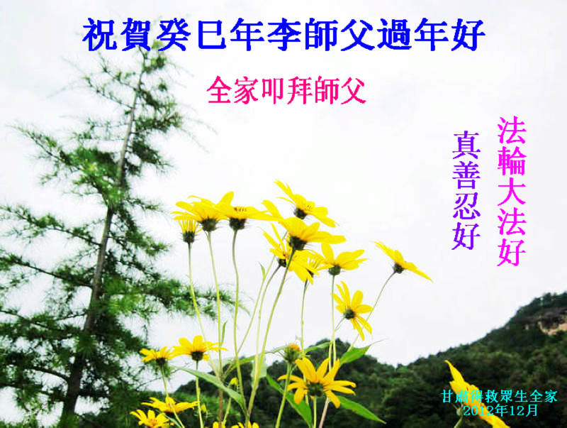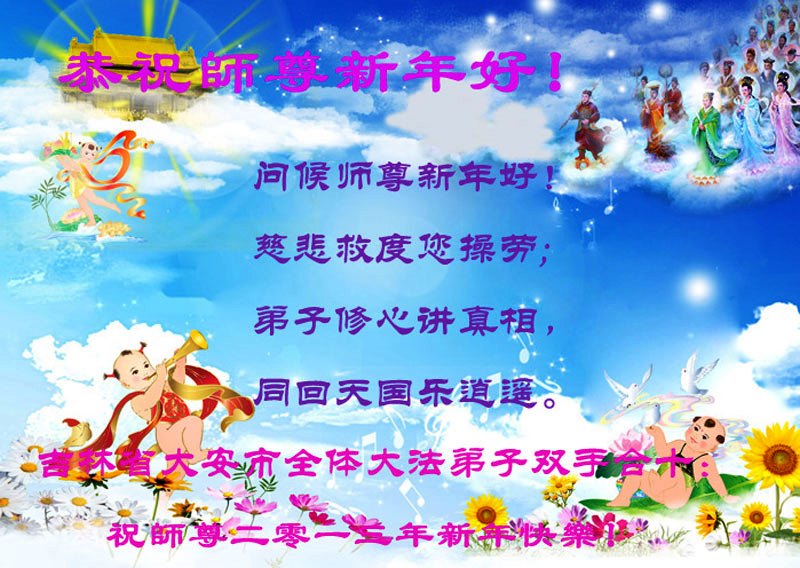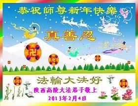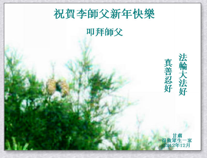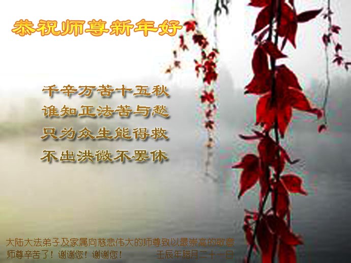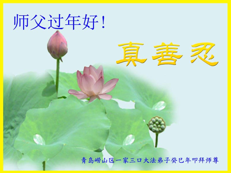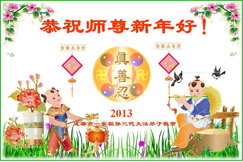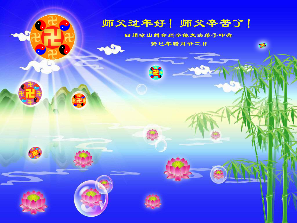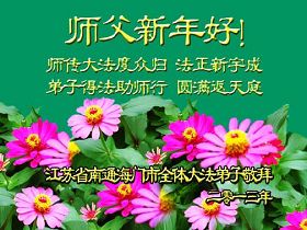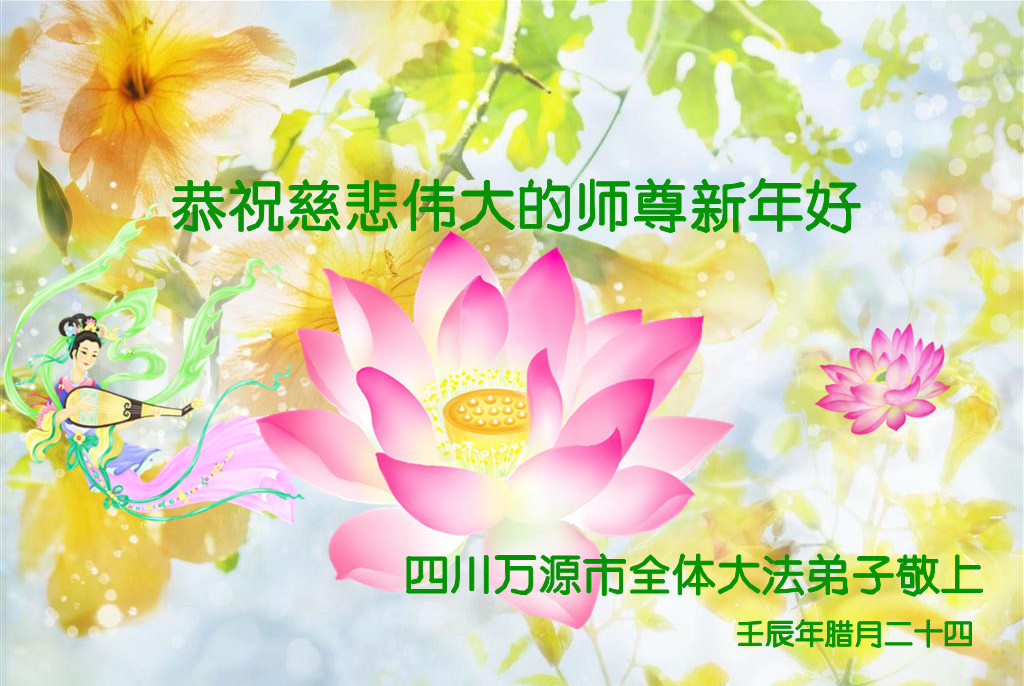 明真相的家人恭祝李洪志师父过年好,新年快乐!感谢您的救度,非常的感谢,祝您永远都快乐!诚心拜上。