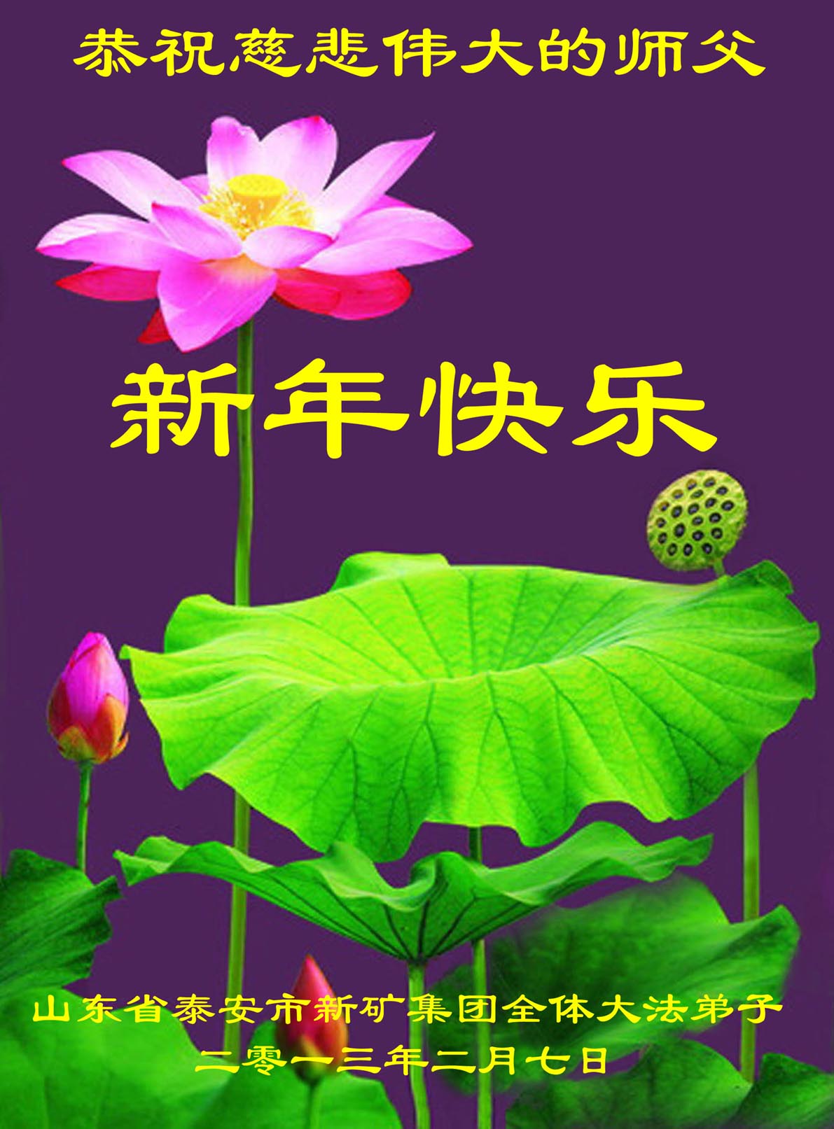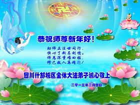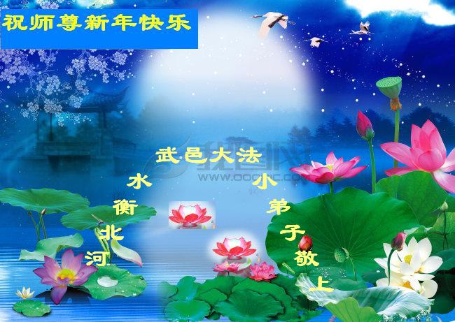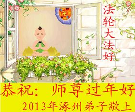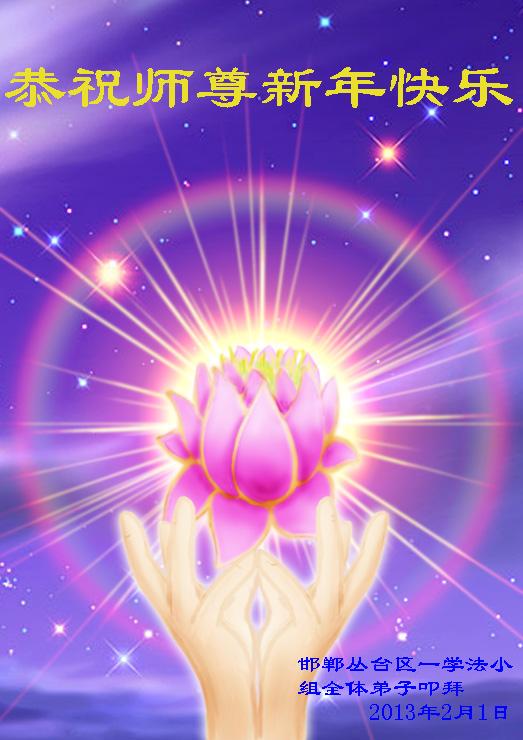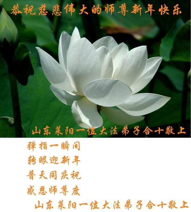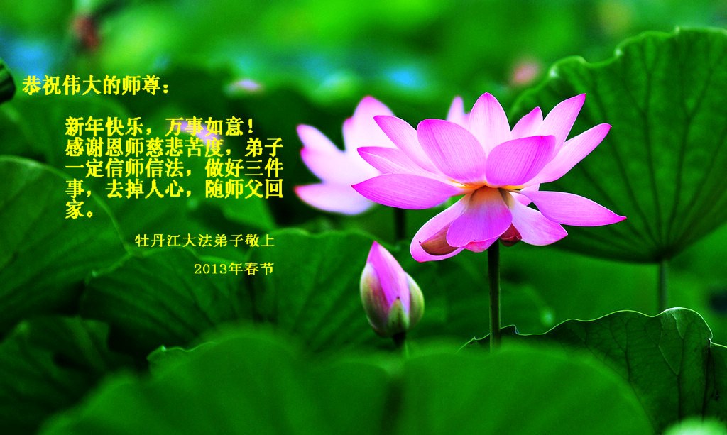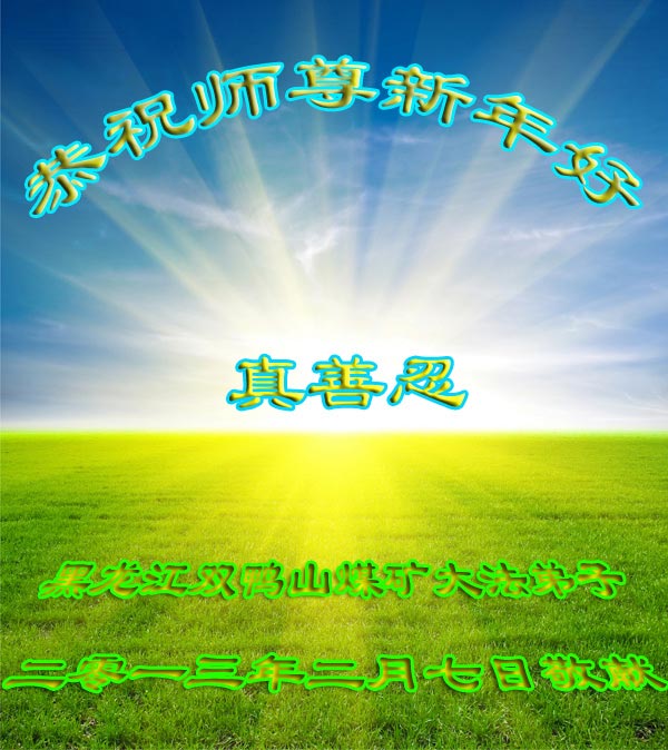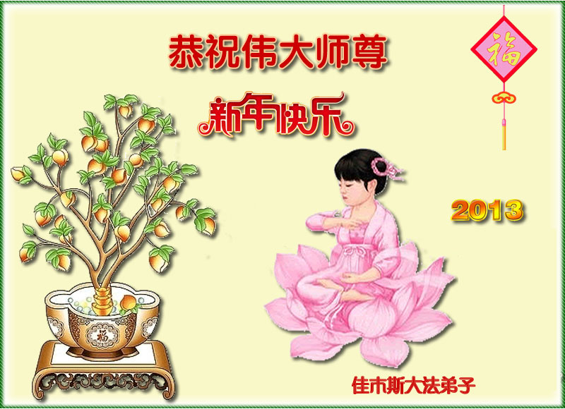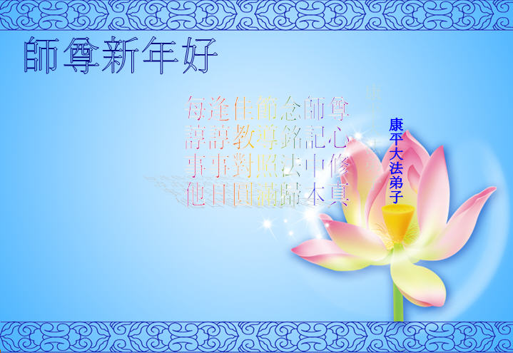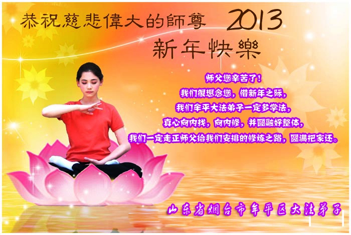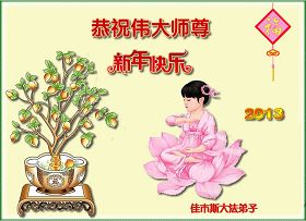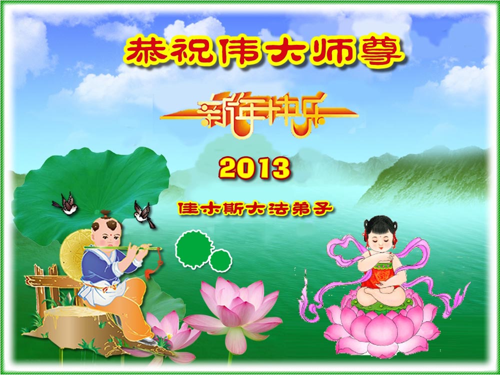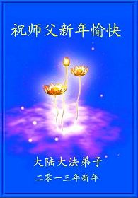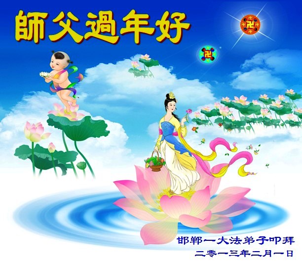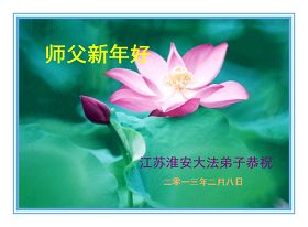 我是一名大法新学员,2012年经历了人生中最大的苦难,以及屡次的挫折,多年的迷茫拼搏后终于踏上修炼路,谢谢师尊帮我化解开危机,救了我们母子,在此恭祝师父新年快乐!弟子一定精進修炼!
