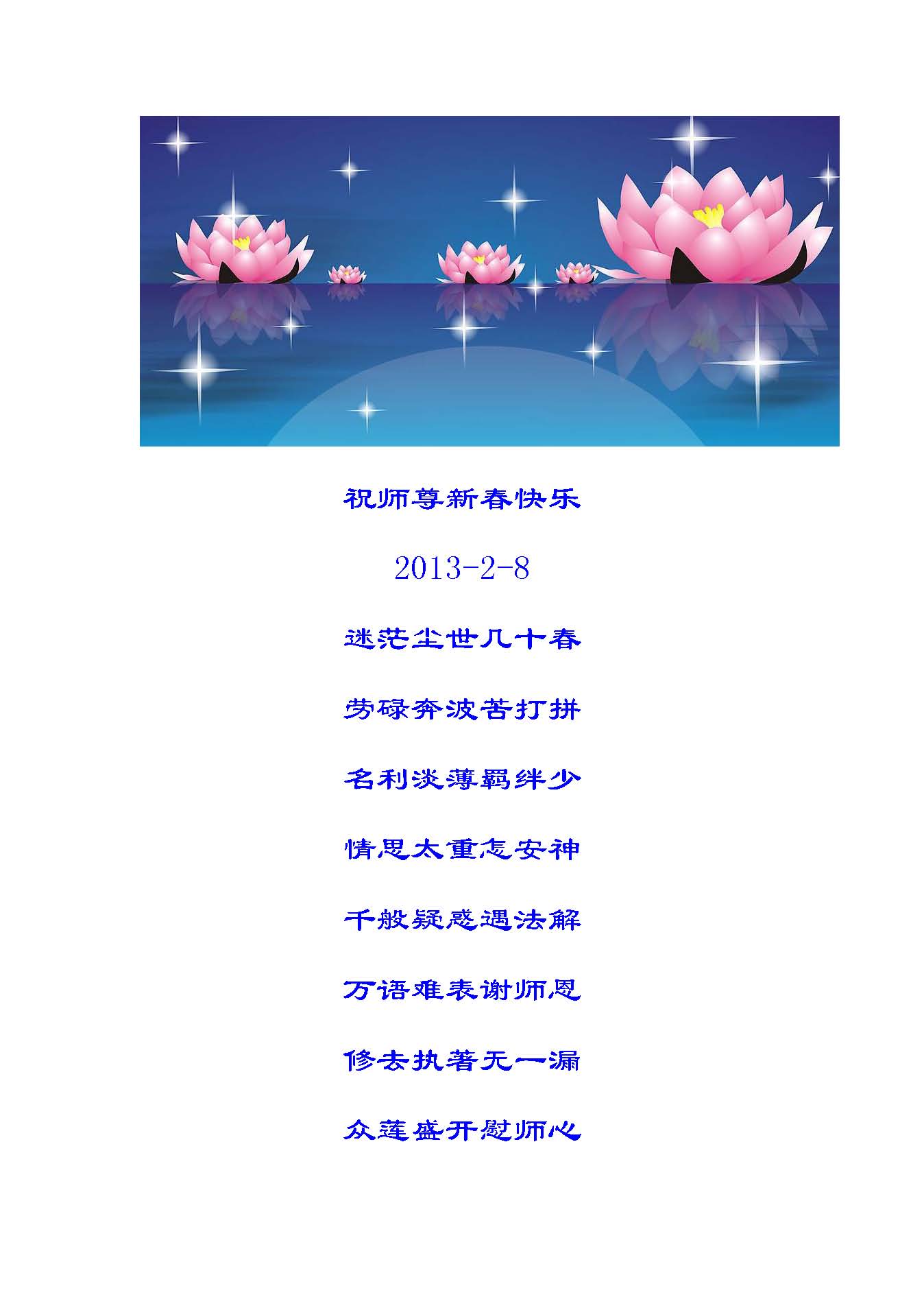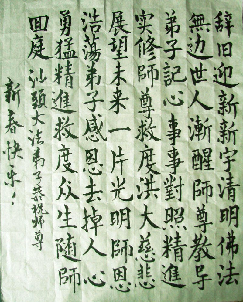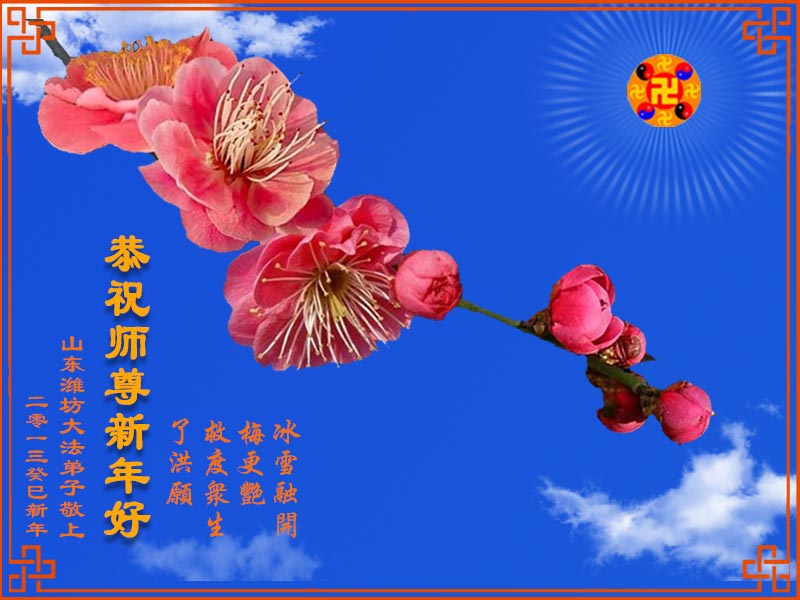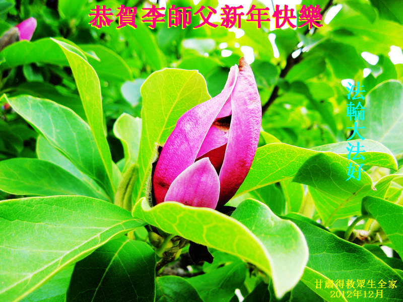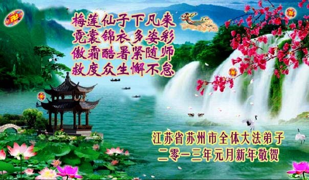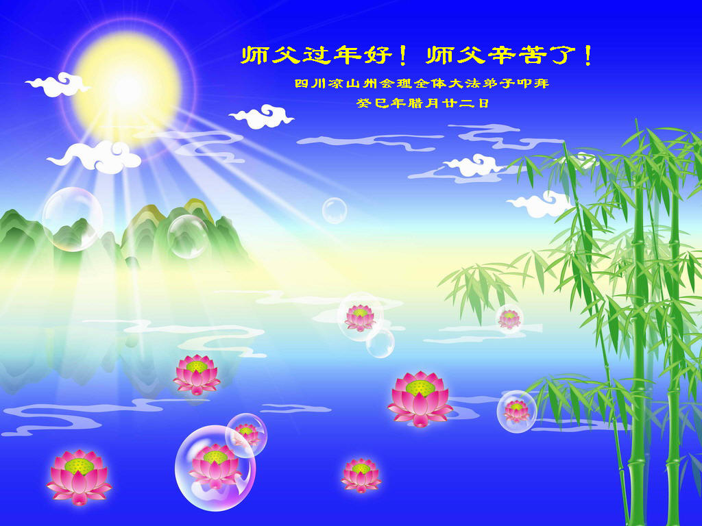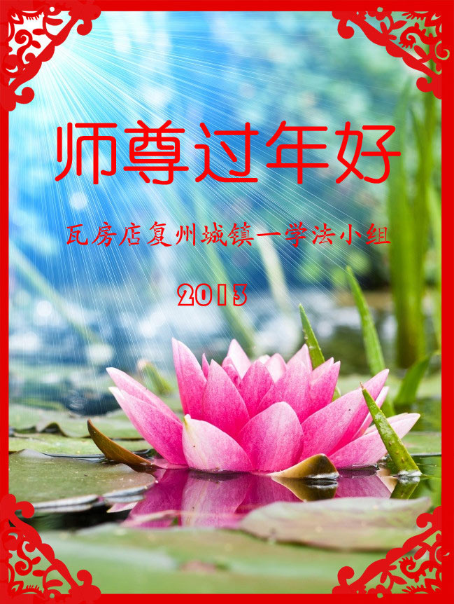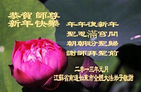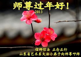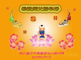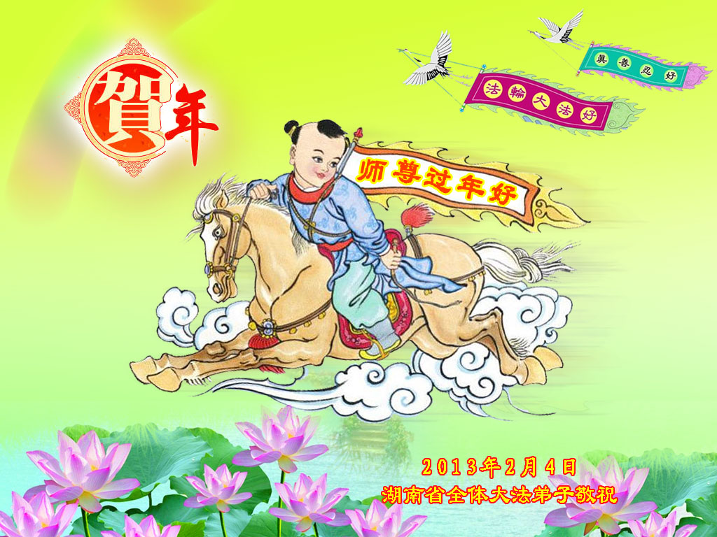 我是一名大法新学员,2012年经历了人生中最大的苦难,以及屡次的挫折,多年的迷茫拼搏后终于踏上修炼路,谢谢师尊帮我化解开危机,救了我们母子,在此恭祝师父新年快乐!弟子一定精進修炼!